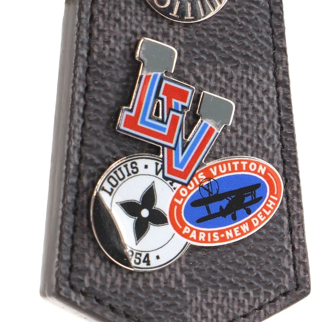 Louis Vuitton Enchappe Key Holder Alps Patches Damier Graphite features the elegant Enchappes Damier Graphite coated canvas, multiple colorful print patches and silver-tone hardware.