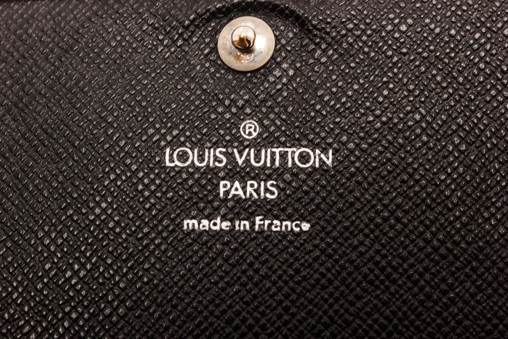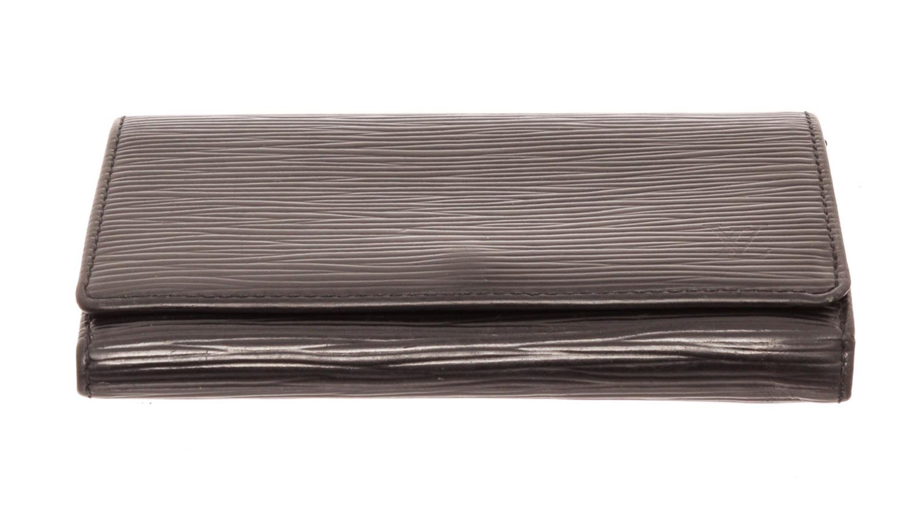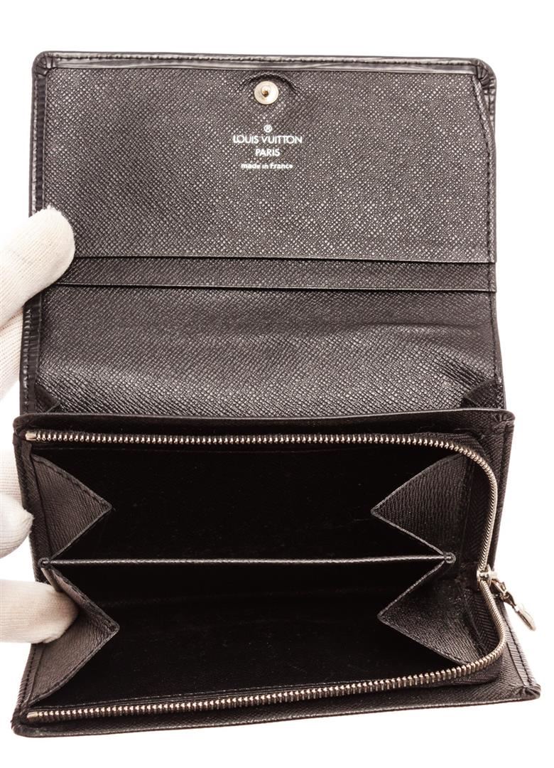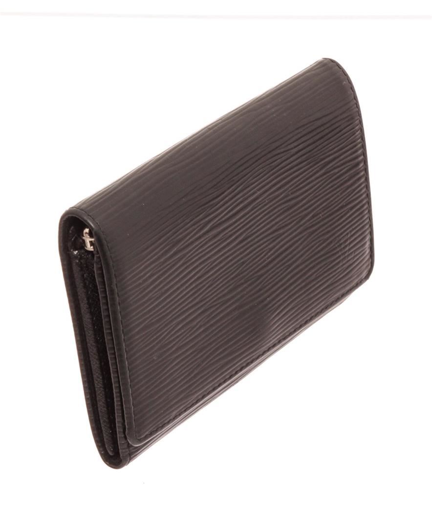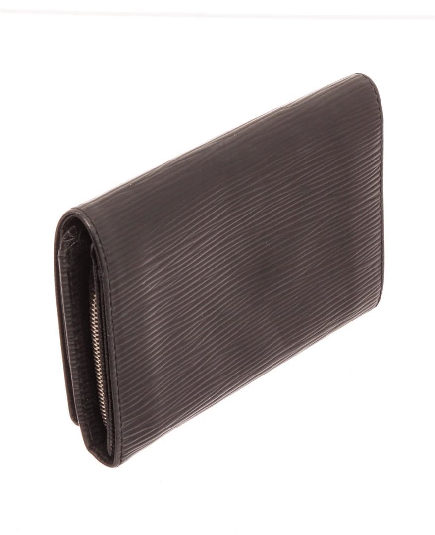 Louis Vuitton Black Porte Monnaie Wallet with material epi leather, gold-tone hardware, trim tan vachetta leather, interior three compartments pocket, and snap closure.