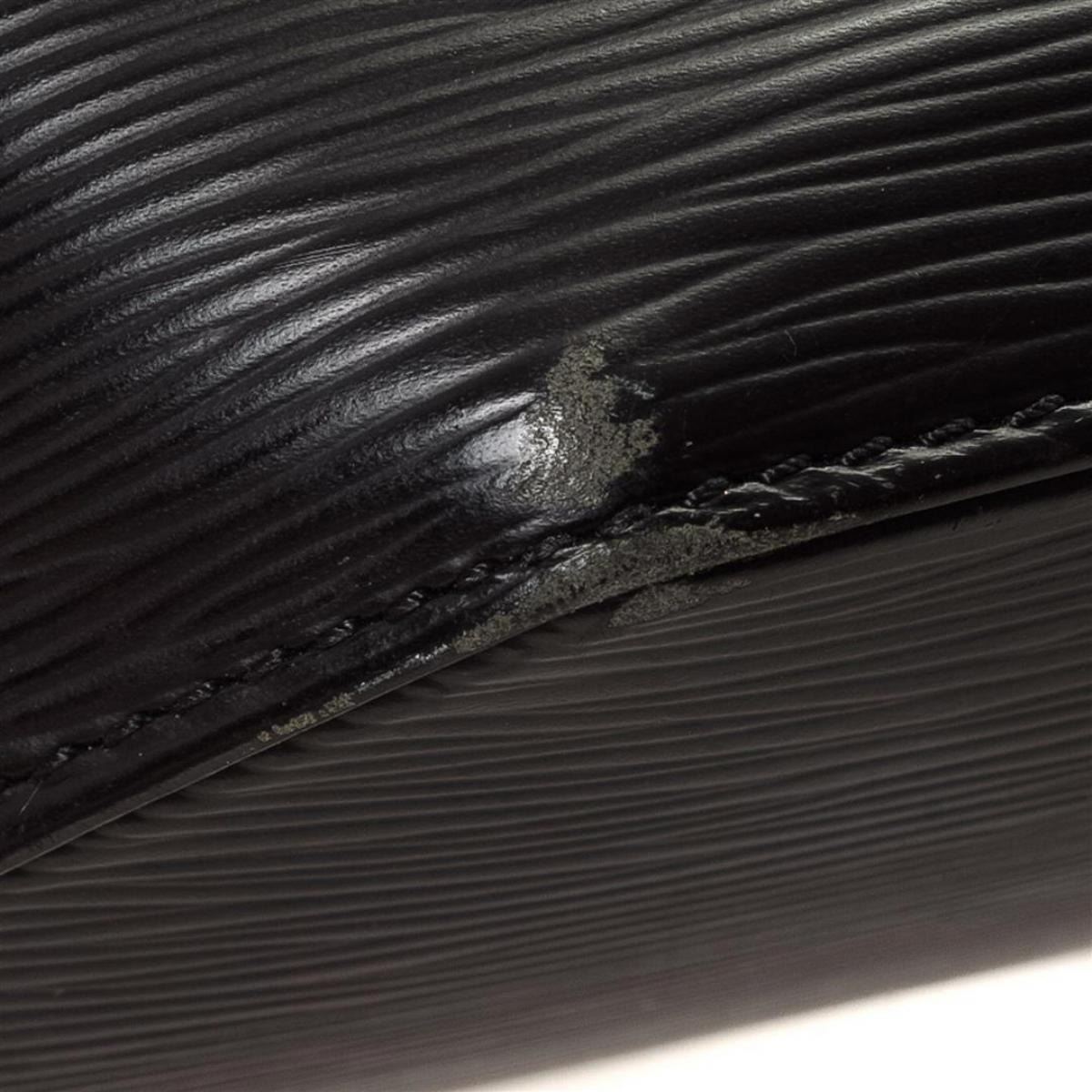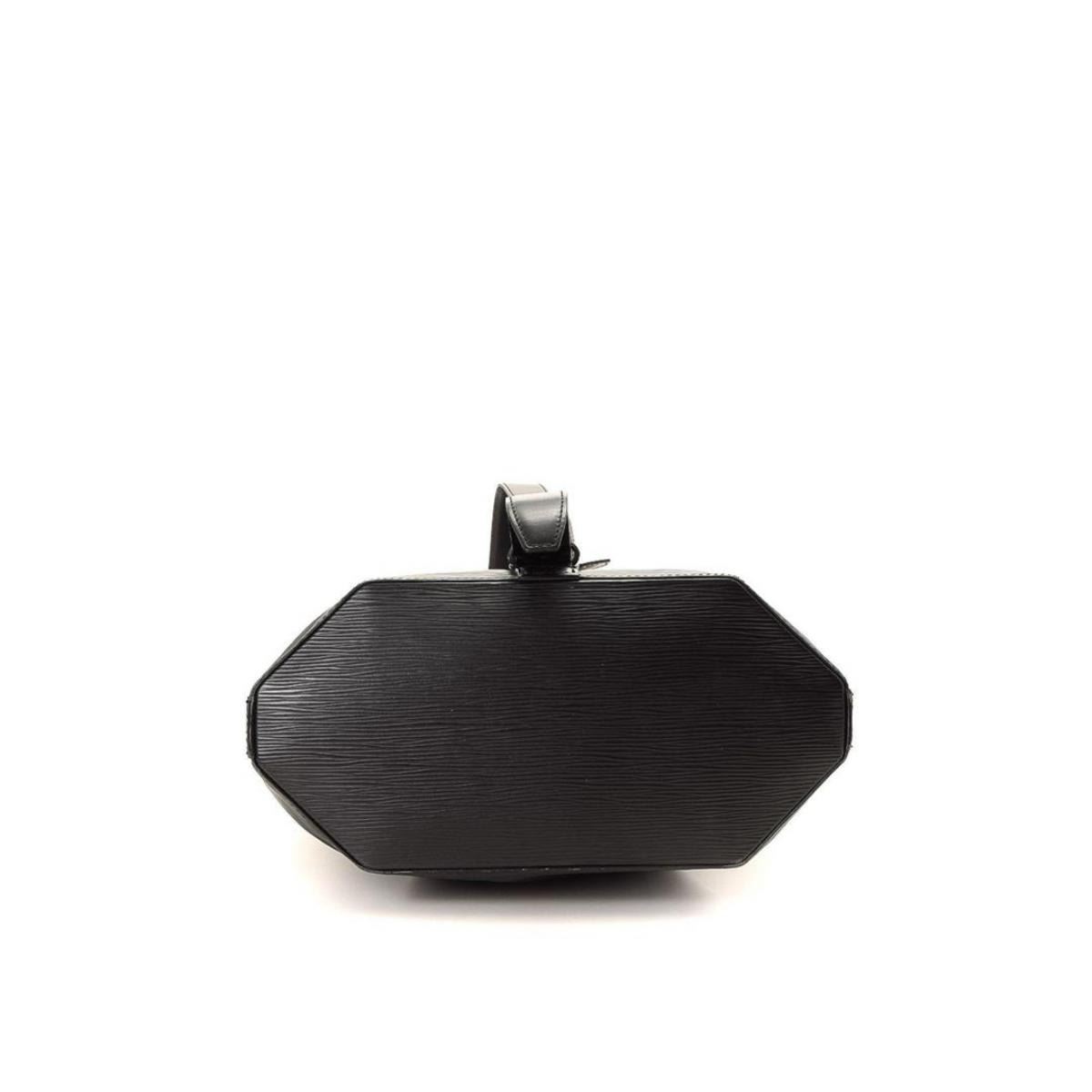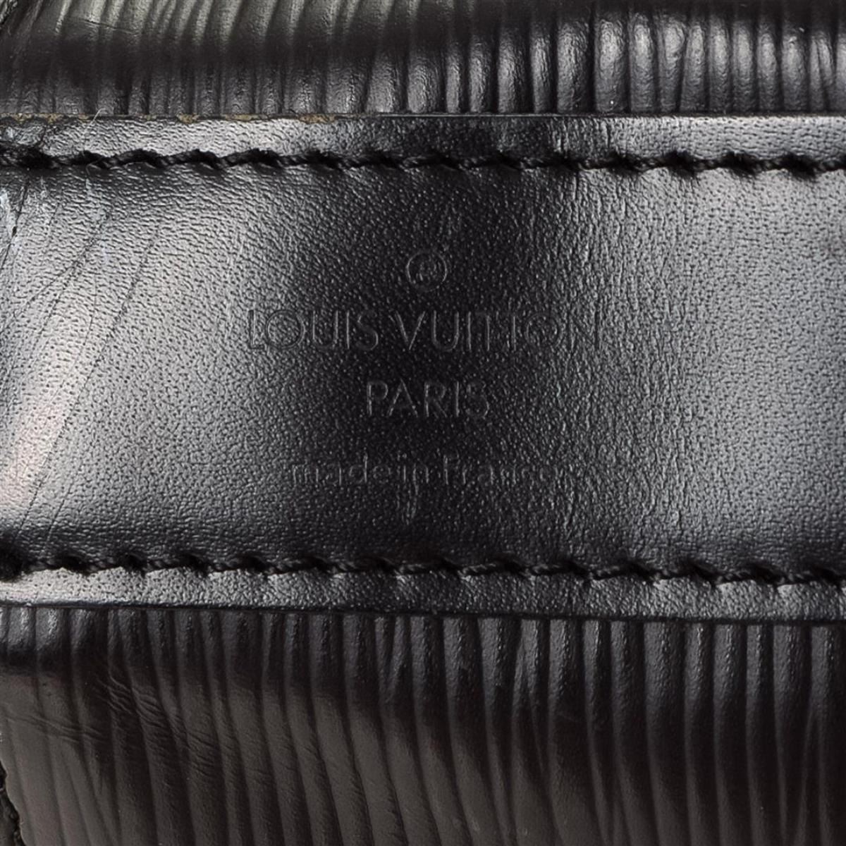 Louis Vuitton Black Sac a Dos Shoulder Bag with gold-tone hardware, trim tan vachetta leather, adjustable shoulder strap and drawstring closure.