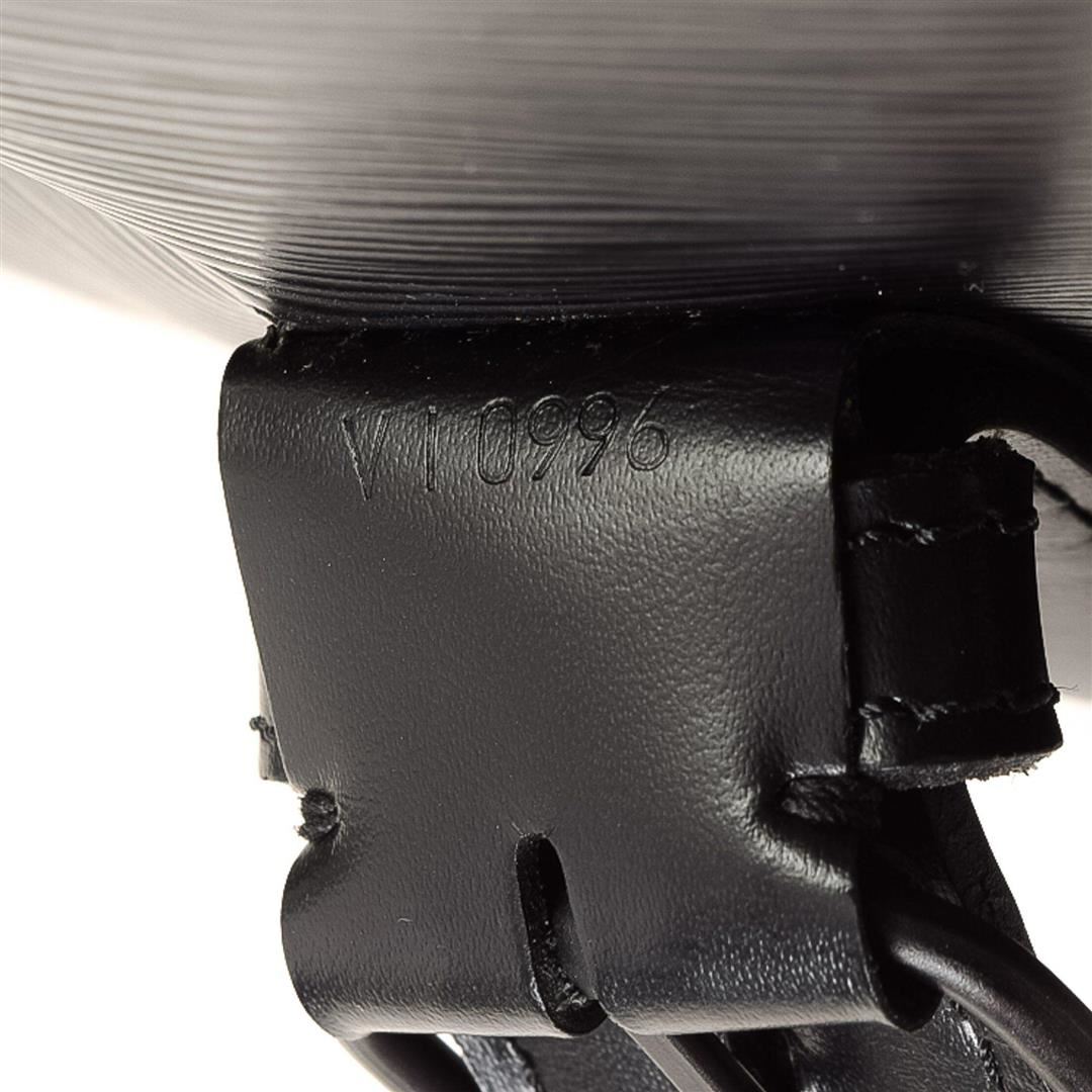 Louis Vuitton Black Sac a Dos Shoulder Bag with gold-tone hardware, trim tan vachetta leather, adjustable shoulder strap and drawstring closure.