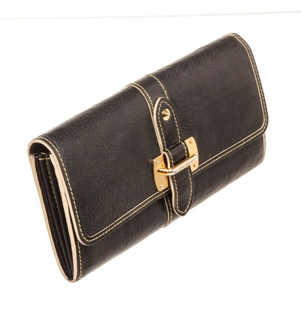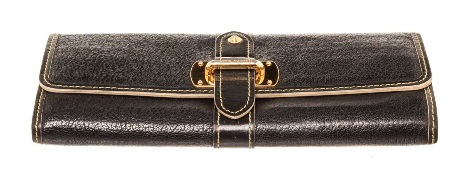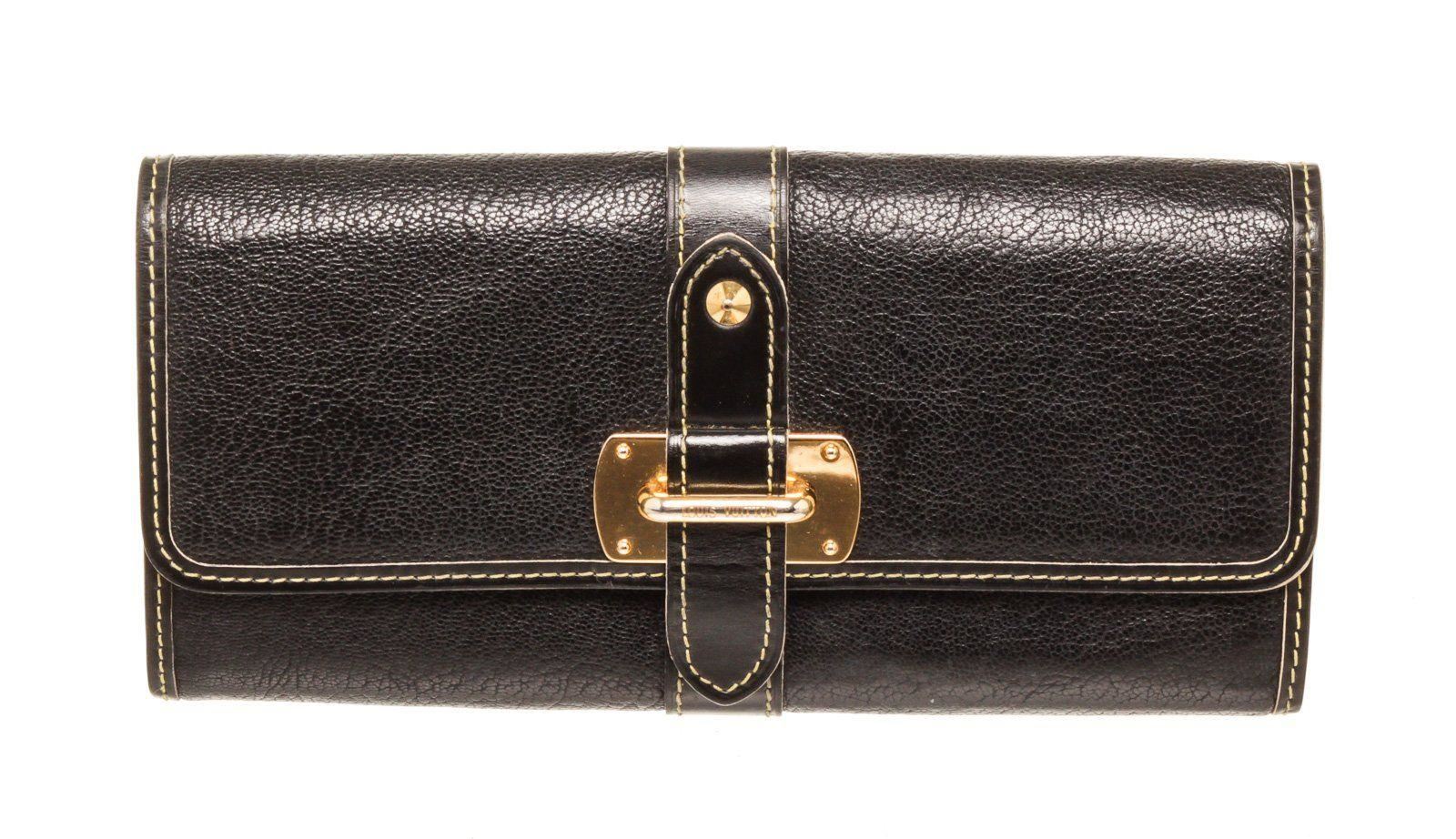 Louis Vuitton Black Suhali Leather Le Favori Wallet with material leather, gold-tone hardware, trim tan vachetta leather, interior compartments Pocket and snap closure.