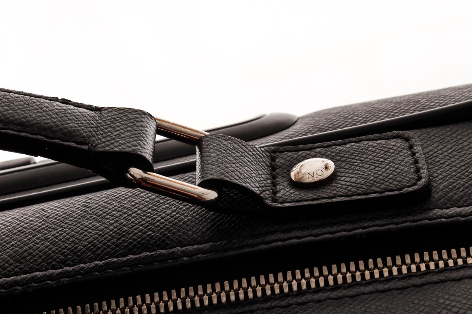 Louis Vuitton Black Taiga Leather Pilot bag. All available information is listed in the description and shown in the photos. Louis Vuitton Black Taiga Leather Pilot bag with exterior material: leather, exterior color: gray, interior material: fabric Length : 44 cm Height : 36 cm Width : 20 cm/Length : 17.32 in Height : 14.17 in Width : 7.87 in