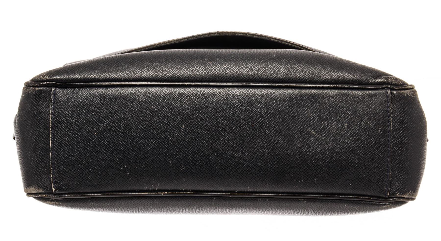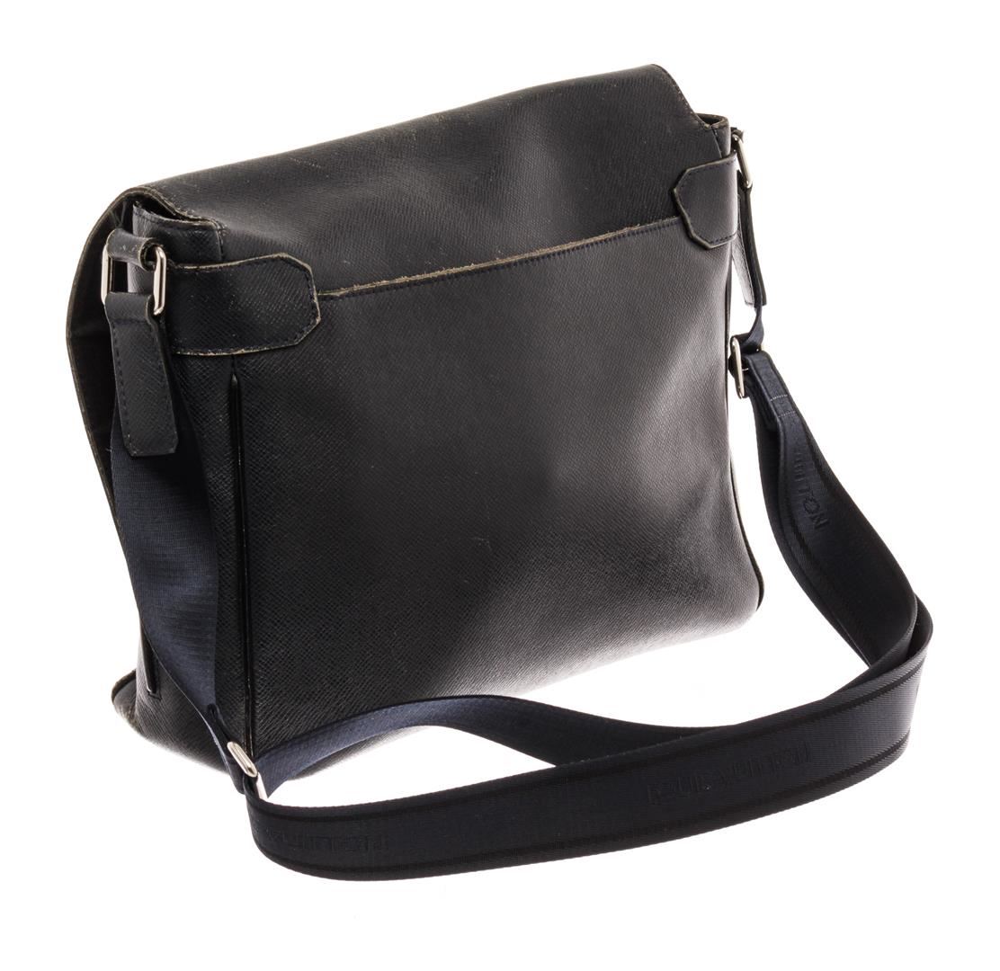 Louis Vuitton Black Taiga Leather Roman MM Messenger Bag. All available information is listed in the description and shown in the photos. Louis Vuitton Black Taiga Leather Roman MM Messenger Bag with the roman features a leather body, silver-tone hardware, a flat leather strap, a front flap with magnetic snap button closure, and interior pockets. 9.8" L x 14.6" W x 3.1" D, / 24.89 x 37.08 x 7.87 Cm