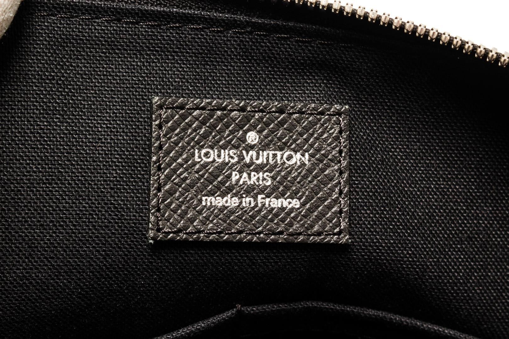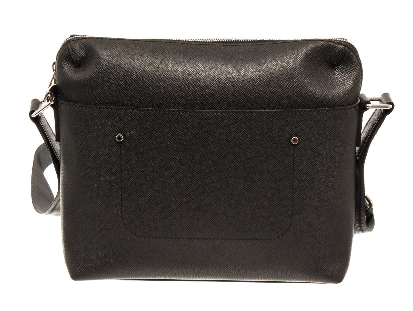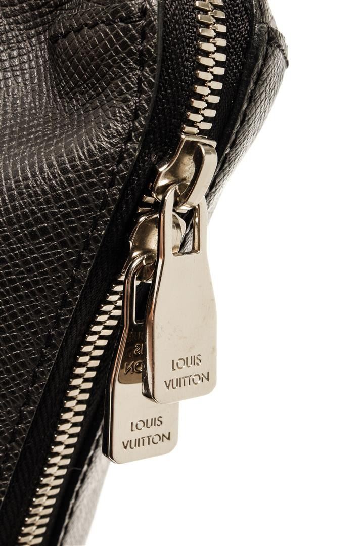 One Louis Vuitton Black Taiga Leather Watcher Messenger Bag. Item is sold AS-IS. All available information is listed in the description and shown in the photo. Louis Vuitton Black Taiga Leather Watcher Messenger Bag with silver tone hardware, black leather trim, black fabric lining, interior open pockets, adjustable strap, and zipper closure.