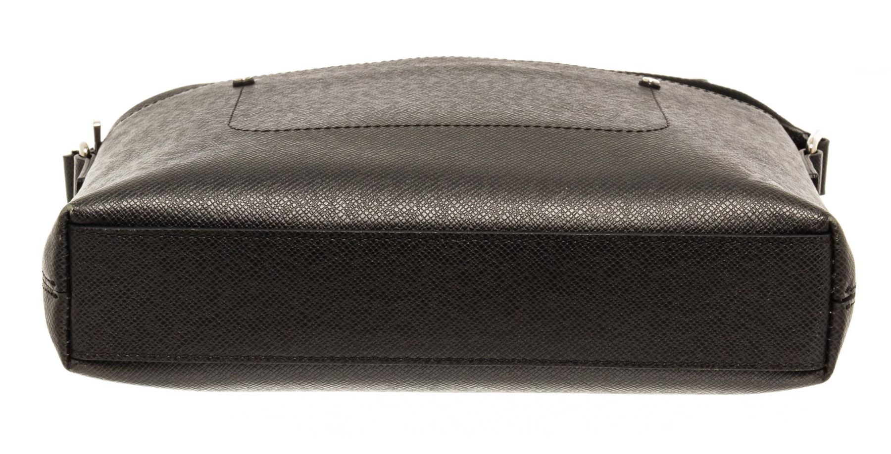 One Louis Vuitton Black Taiga Leather Watcher Messenger Bag. Item is sold AS-IS. All available information is listed in the description and shown in the photo. Louis Vuitton Black Taiga Leather Watcher Messenger Bag with silver tone hardware, black leather trim, black fabric lining, interior open pockets, adjustable strap, and zipper closure.