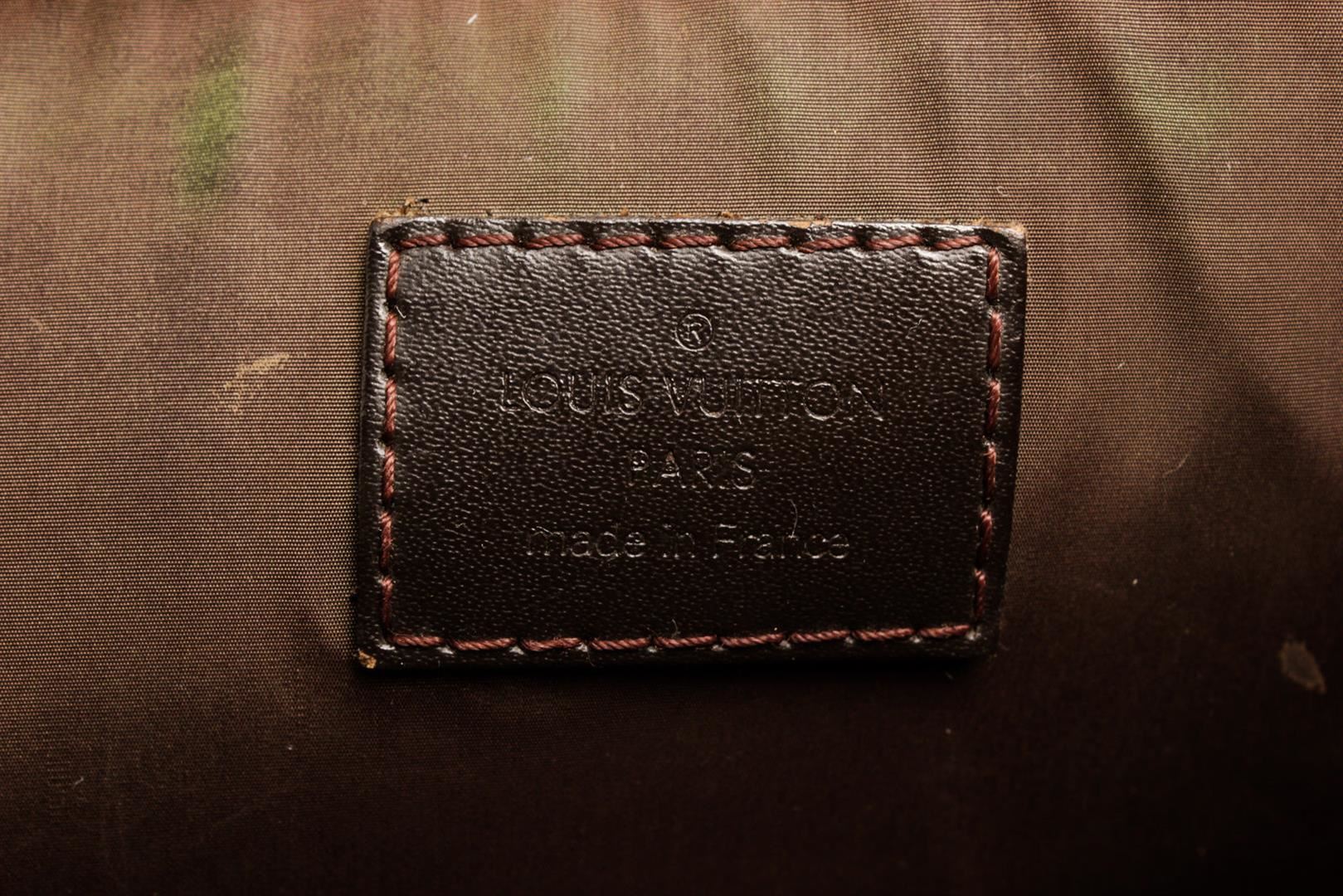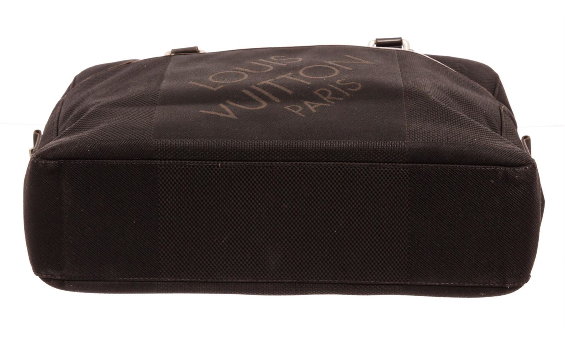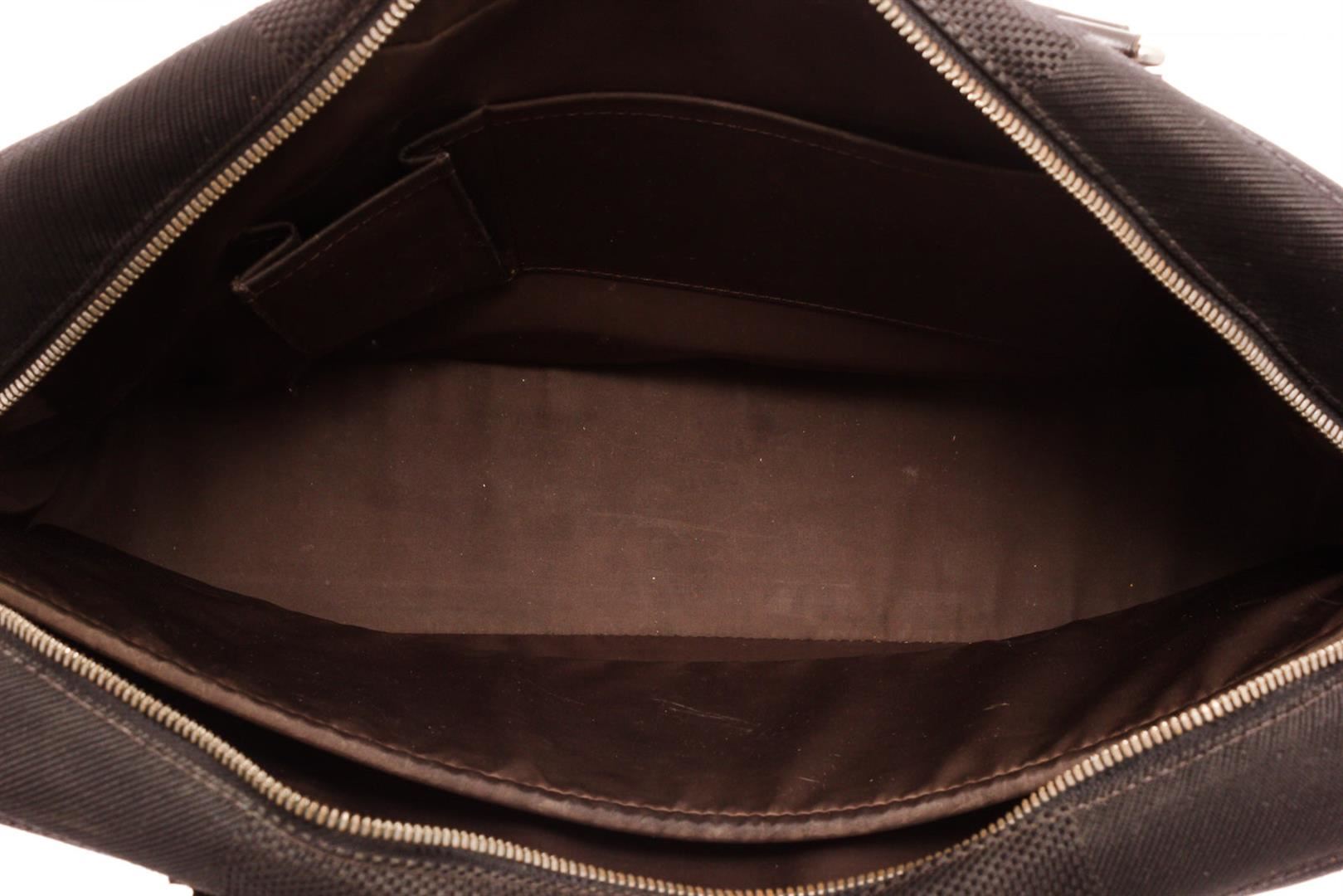 Louis Vuitton Black Yack Briefcases with gold-tone hardware, trim tan vachetta leather, canvas lining, dual top handle and zipper closure.