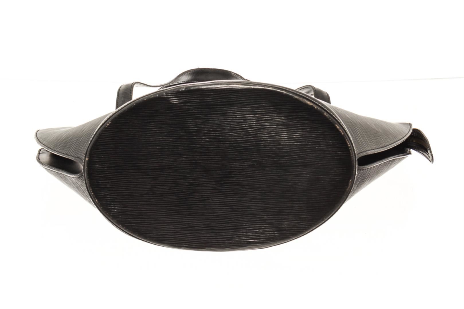 One Louis Vuitton Black Ã?pi Leather Saint Jacques Shoulder bag. Item is sold AS-IS. All available information is listed in the description and shown in the photo. Louis Vuitton Black ?pi Leather Saint Jacques Shoulder bag with silver-tone hardware, debossed logo to the front, top zip fastening two long top handles, internal logo patch, internal zip pocket, leather lining. Depth 3.9 in, Handle 4.7 in, Height 9.4 in, Width 9.1 in / Depth 10 cm, Handle 12 cm, Height 24 cm, Width 23 cm