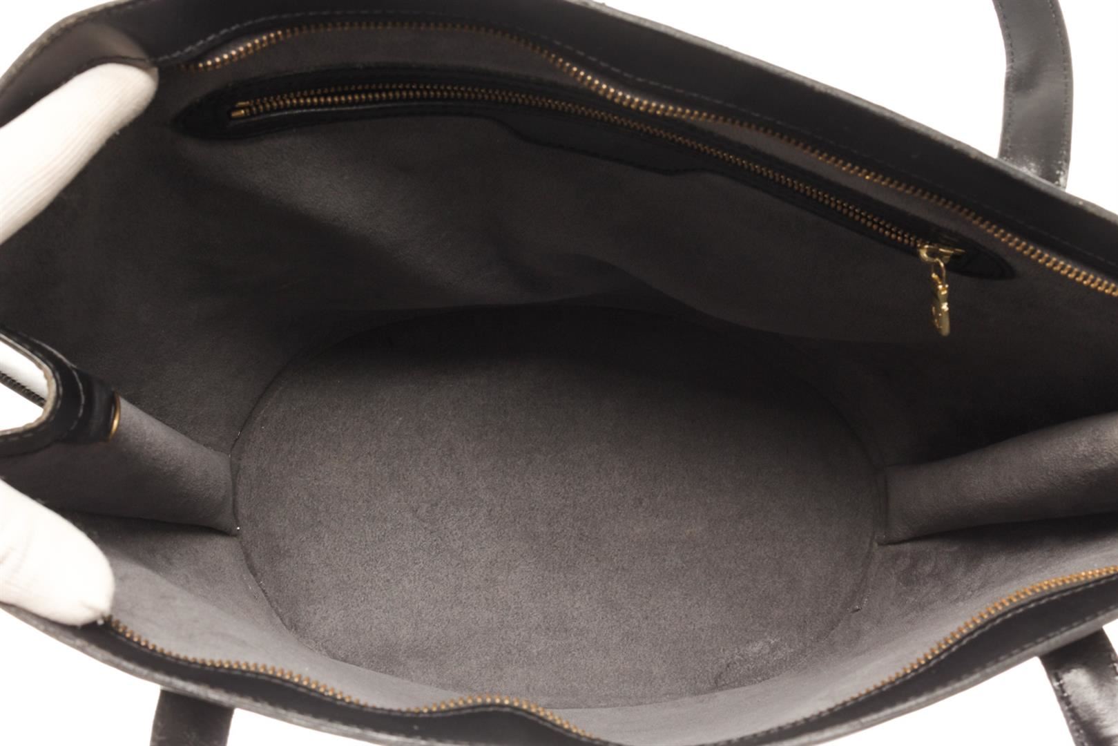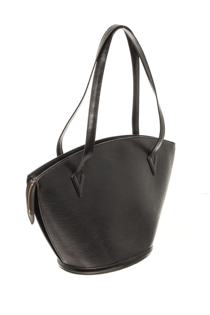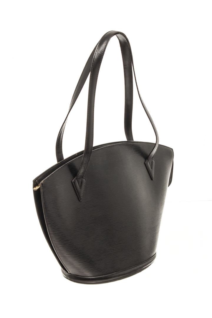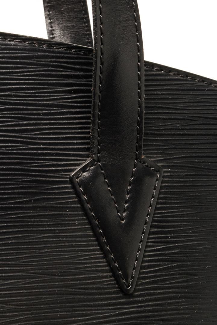 One Louis Vuitton Black Ã?pi Leather Saint Jacques Shoulder bag. Item is sold AS-IS. All available information is listed in the description and shown in the photo. Louis Vuitton Black ?pi Leather Saint Jacques Shoulder bag with silver-tone hardware, debossed logo to the front, top zip fastening two long top handles, internal logo patch, internal zip pocket, leather lining. Depth 3.9 in, Handle 4.7 in, Height 9.4 in, Width 9.1 in / Depth 10 cm, Handle 12 cm, Height 24 cm, Width 23 cm