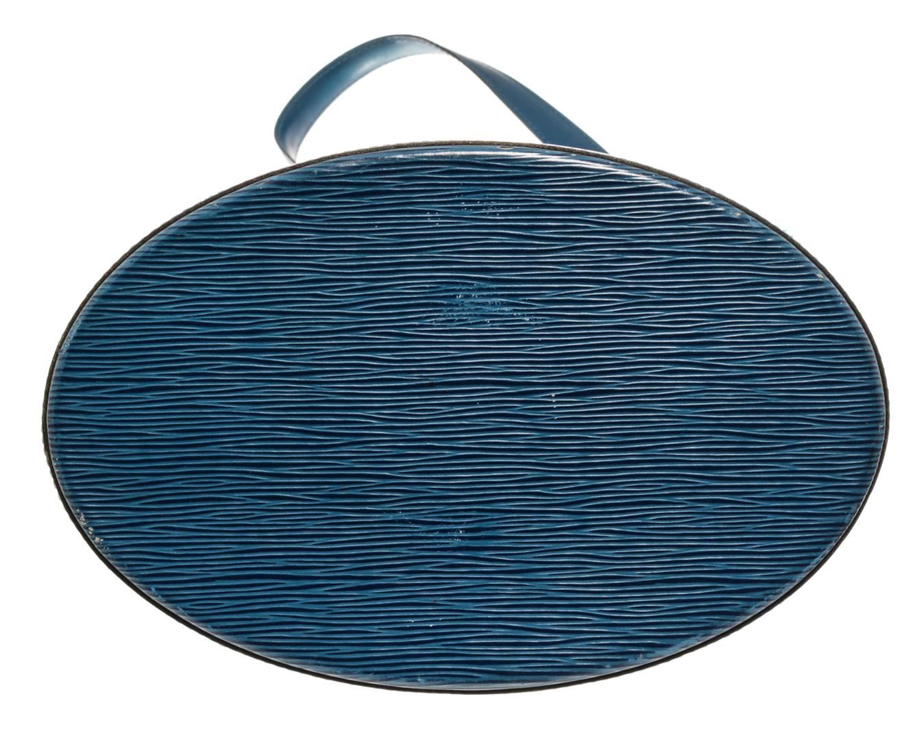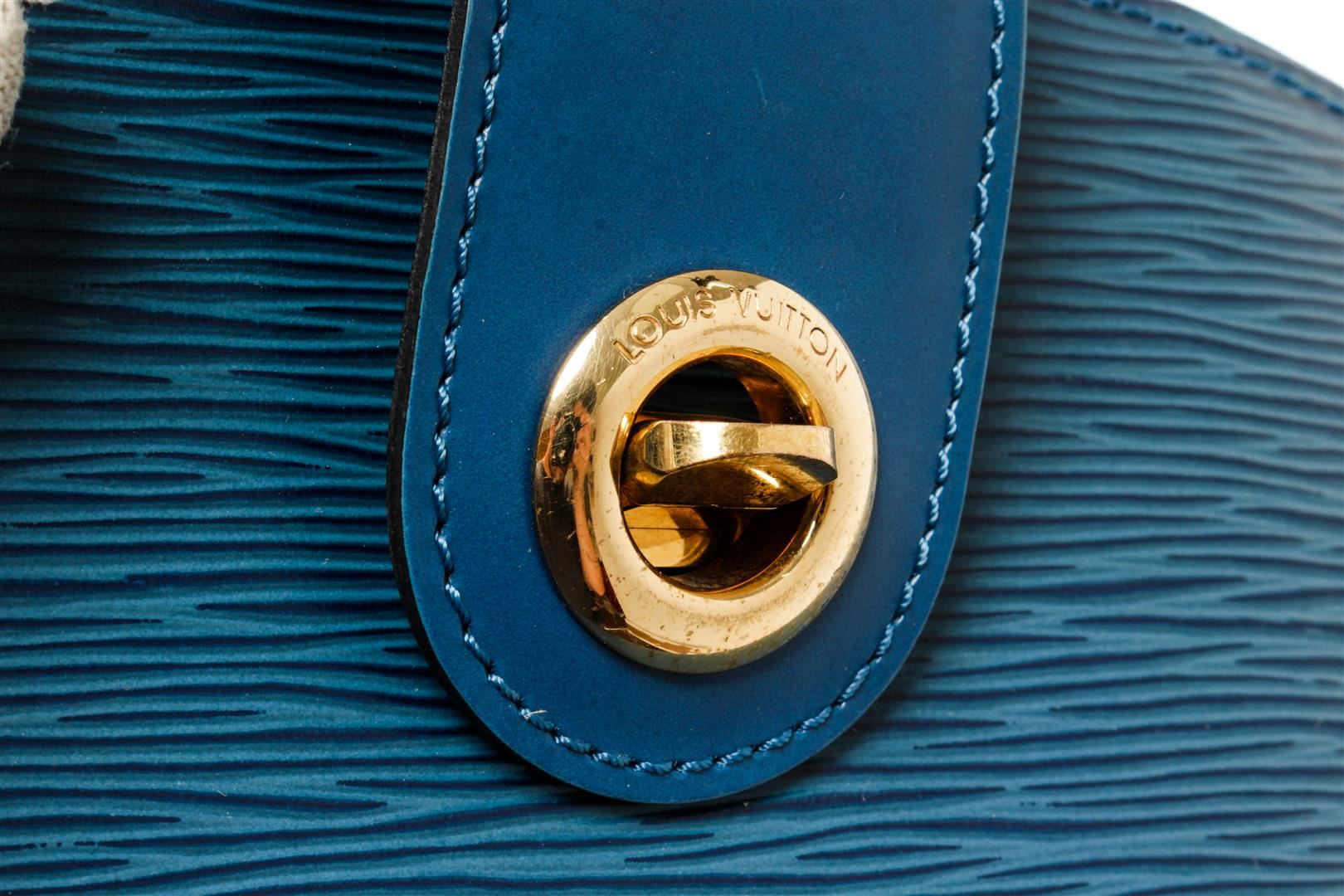 One Louis Vuitton Blue Epi Cluny. Item is sold AS-IS. All available information is listed in the description and shown in the photo. Louis Vuitton Blue Epi Cluny with adjustable shoulder strap, suede lining, interior pocket, gold tone hardware and turn lock closure