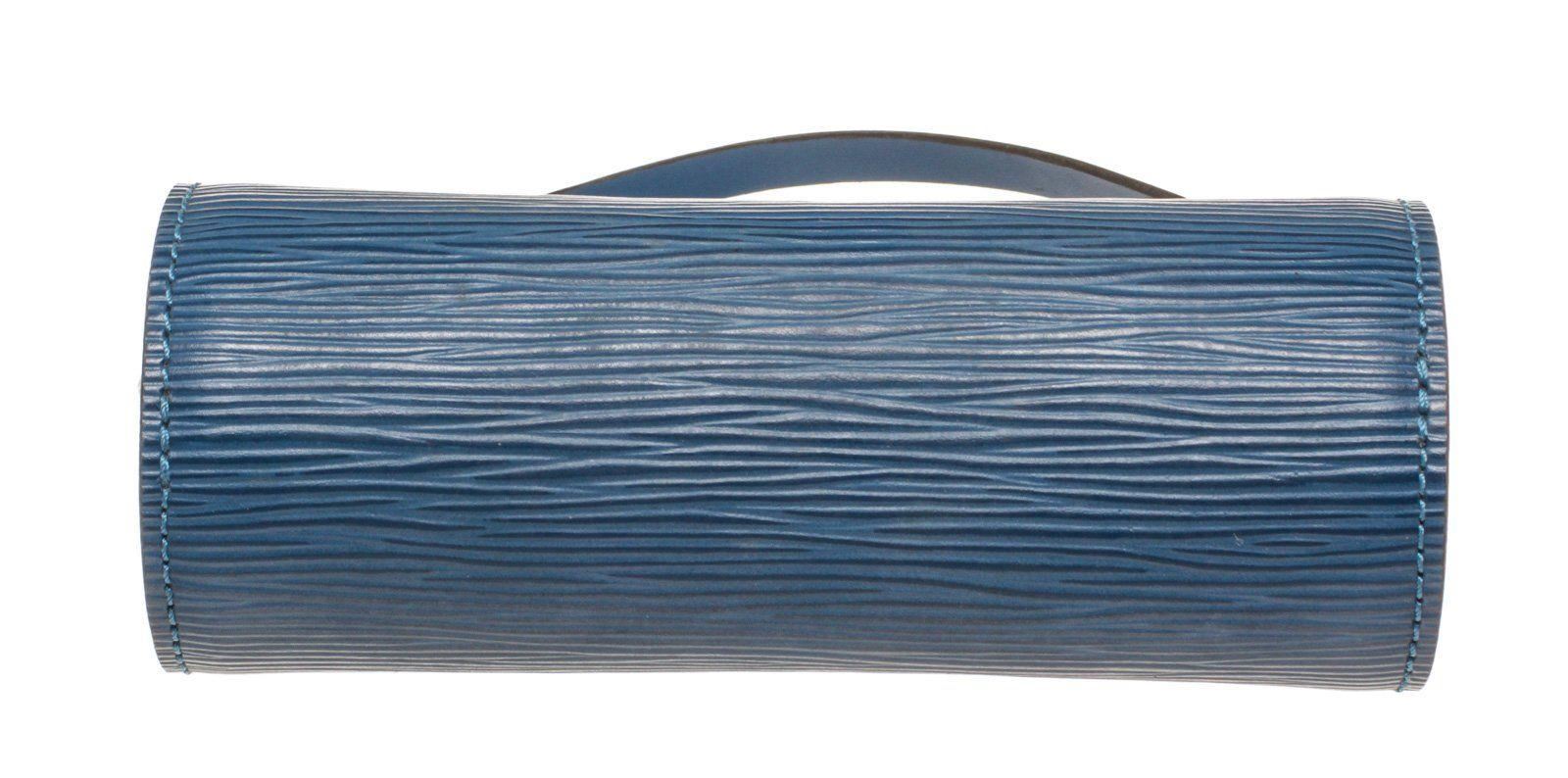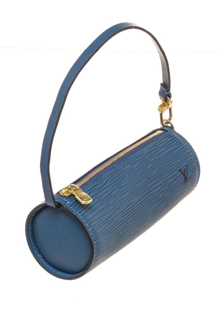 Louis Vuitton Blue Epi Leather Mini Papillon Shoulder Bag with epi leather gold-tone hardware, trim tan vachetta leather and zipper closure.