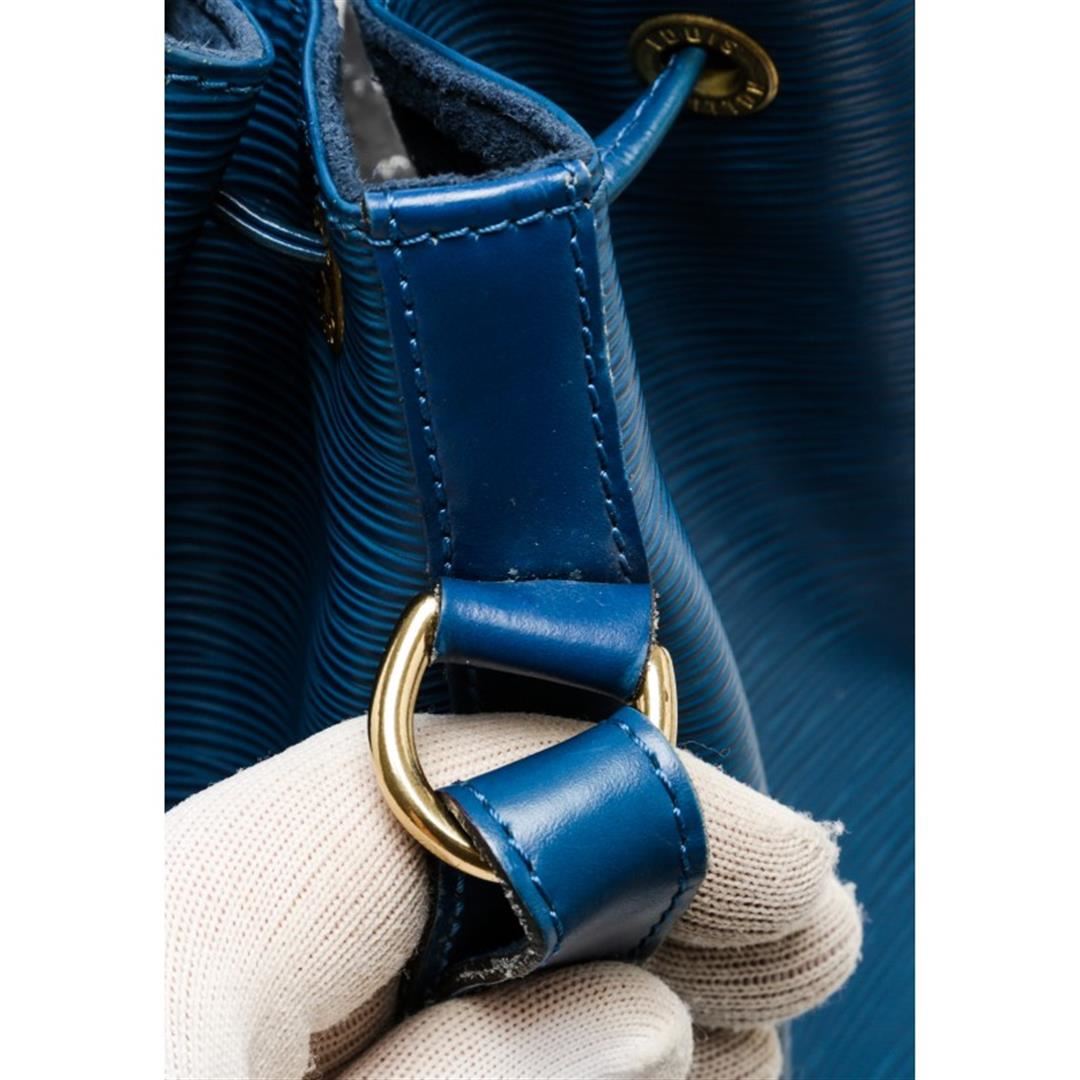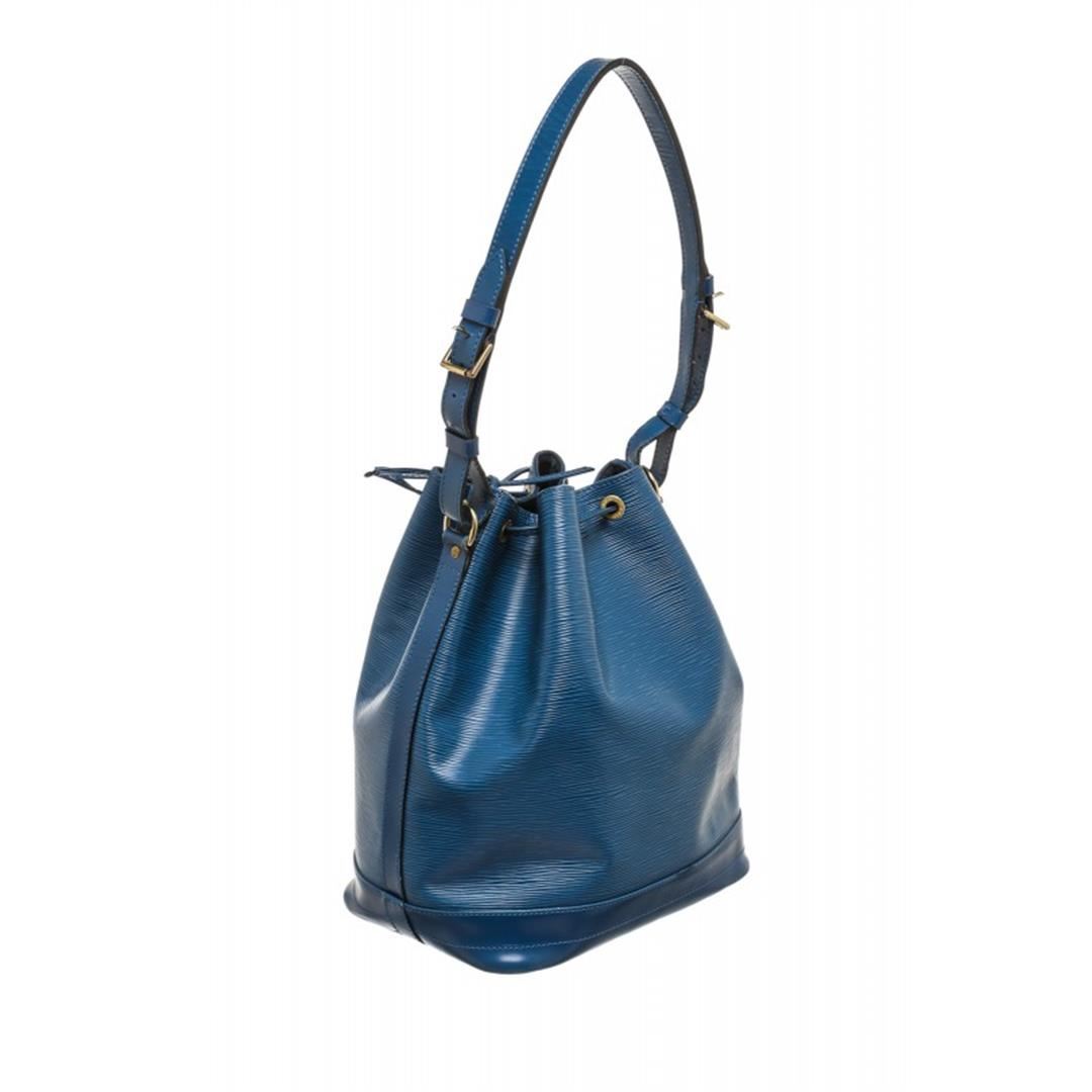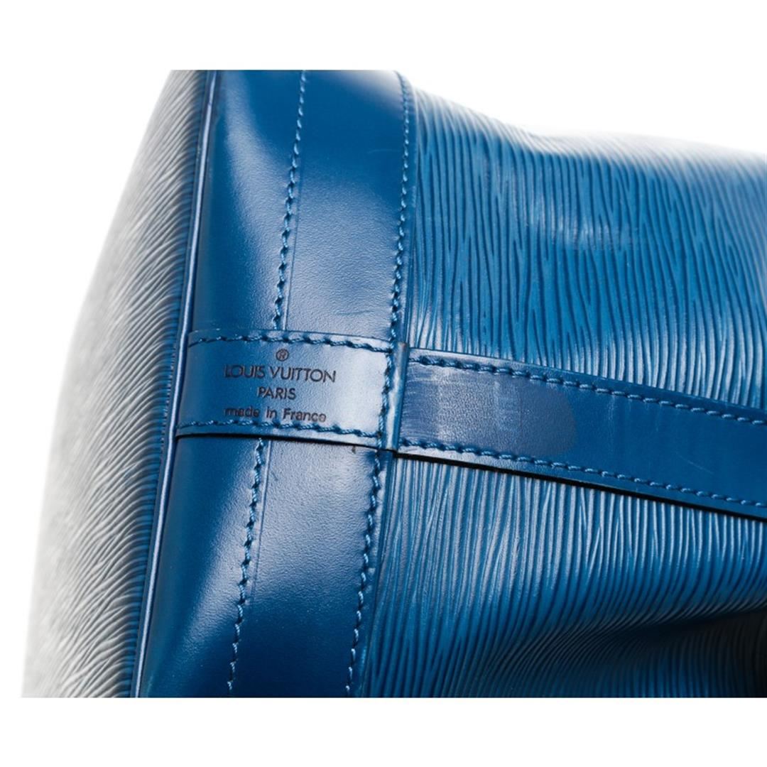Epi leather Louis Vuitton Noe GM with brass hardware, single adjustable shoulder strap, tonal leather trim, embossed logo at exterior side, Alcantara lining and drawstring closure at top.