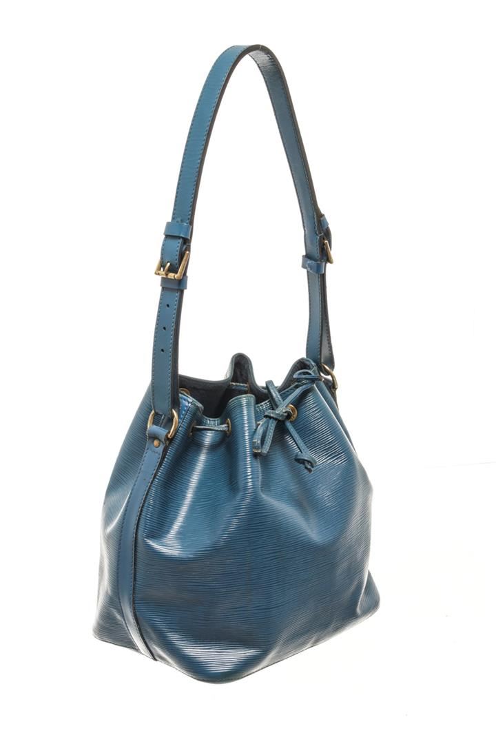 One Louis Vuitton Blue Epi Leather Noe GM Shoulder Bag. Item is sold AS-IS. All available information is listed in the description and shown in the photo. louis vuitton blue epi leather noe gm shoulder bag with the noe features an epi leather body, adjustable flat strap, open top with a drawstring closure, and alcantara lining. 13.4" L x 10.2" W x 7.1" D / 34.03 x 25.90 x 18.03 CM