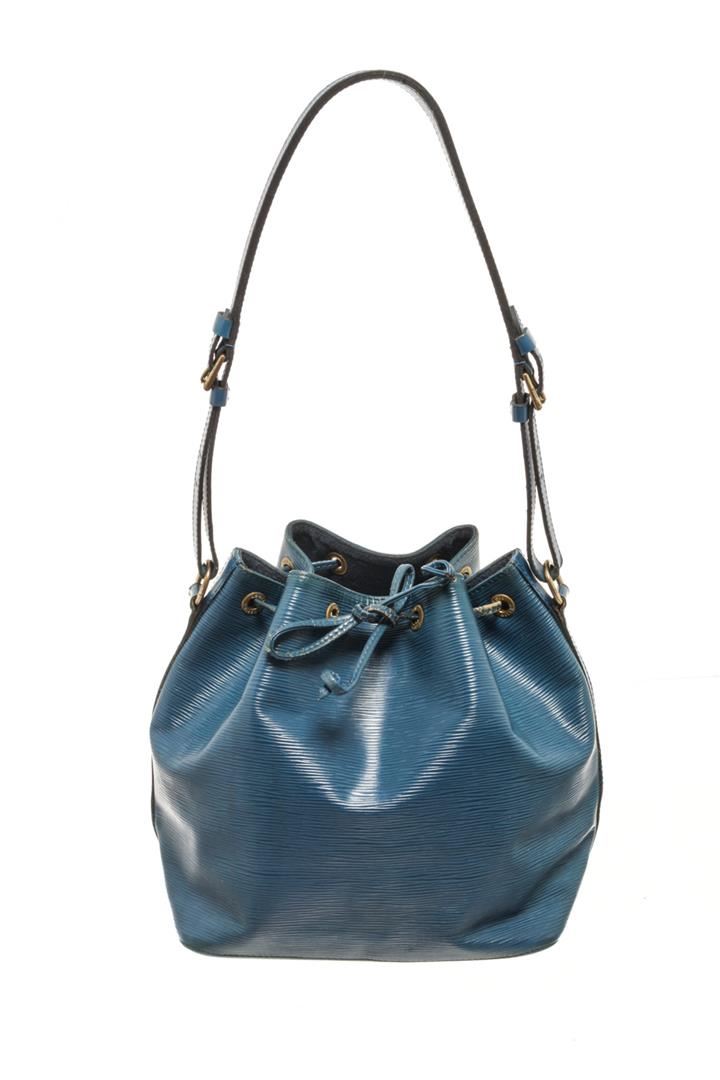One Louis Vuitton Blue Epi Leather Noe GM Shoulder Bag. Item is sold AS-IS. All available information is listed in the description and shown in the photo. louis vuitton blue epi leather noe gm shoulder bag with the noe features an epi leather body, adjustable flat strap, open top with a drawstring closure, and alcantara lining. 13.4" L x 10.2" W x 7.1" D / 34.03 x 25.90 x 18.03 CM