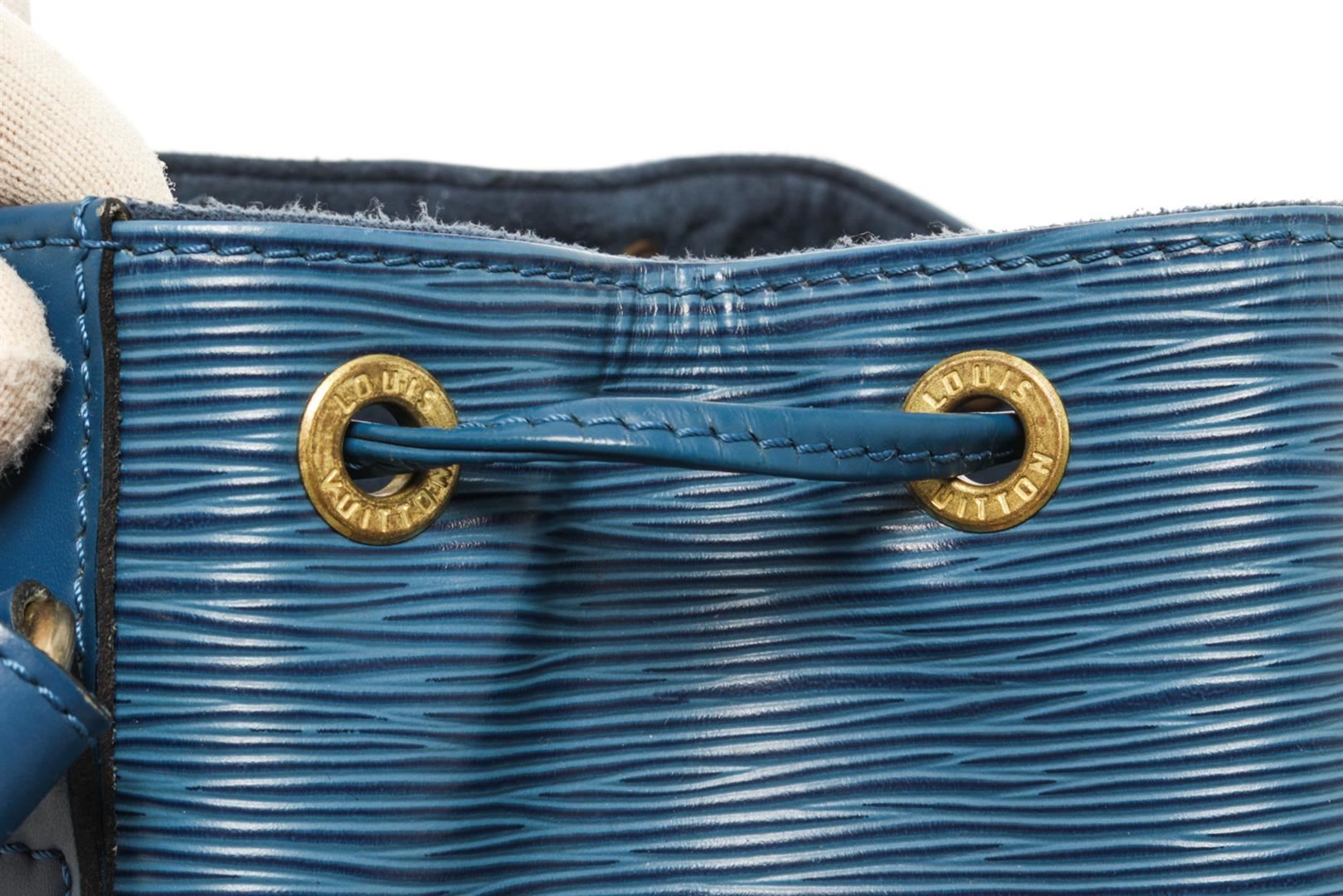 One Louis Vuitton Blue Epi Leather Noe PM Shoulder Bag. Item is sold AS-IS. All available information is listed in the description and shown in the photo. louis vuitton blue epi leather noe pm with adjustable shoulder strap, suede lining, gold tone hardware and drawstring closure.