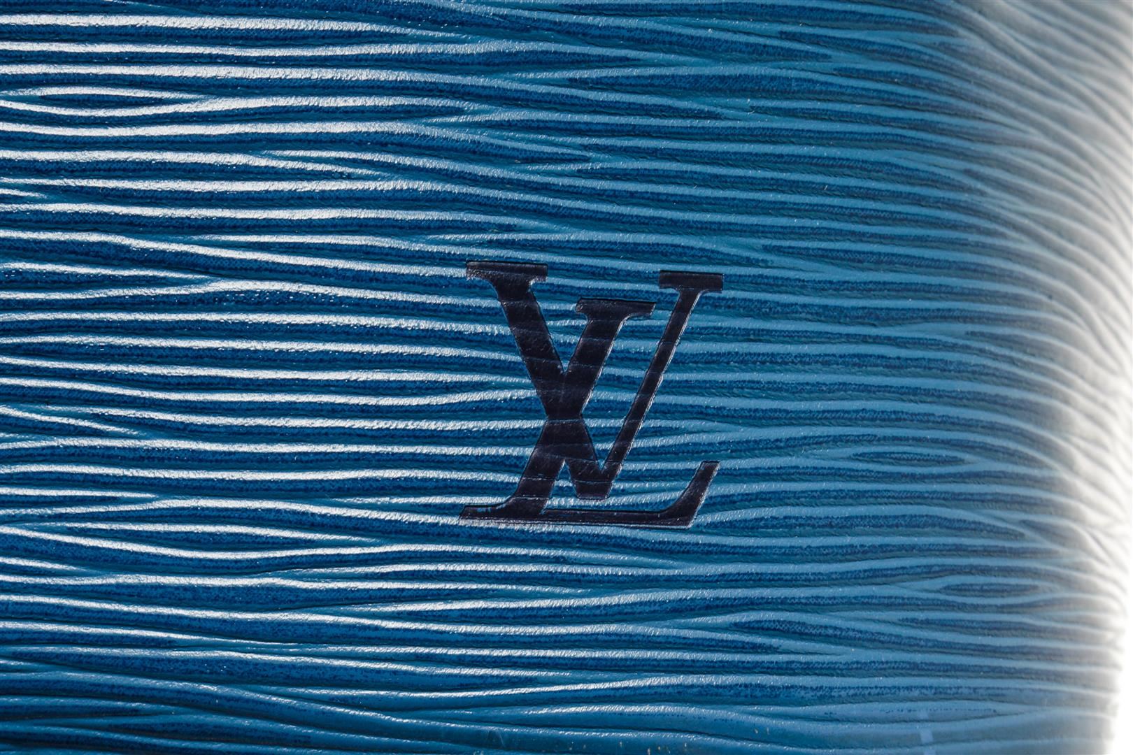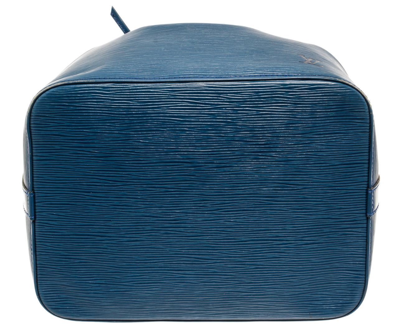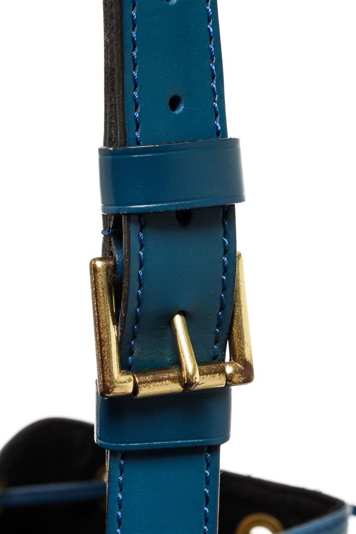 One Louis Vuitton Blue Epi Leather Noe PM. Item is sold AS-IS. All available information is listed in the description and shown in the photo. Louis Vuitton Blue Epi Leather Noe PM with adjustable shoulder strap, suede lining, gold tone hardware and drawstring closure.
