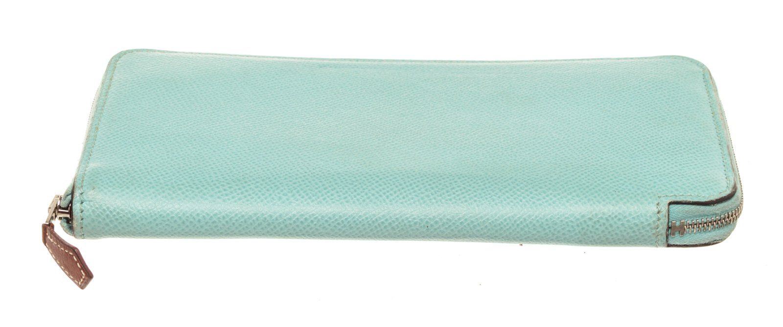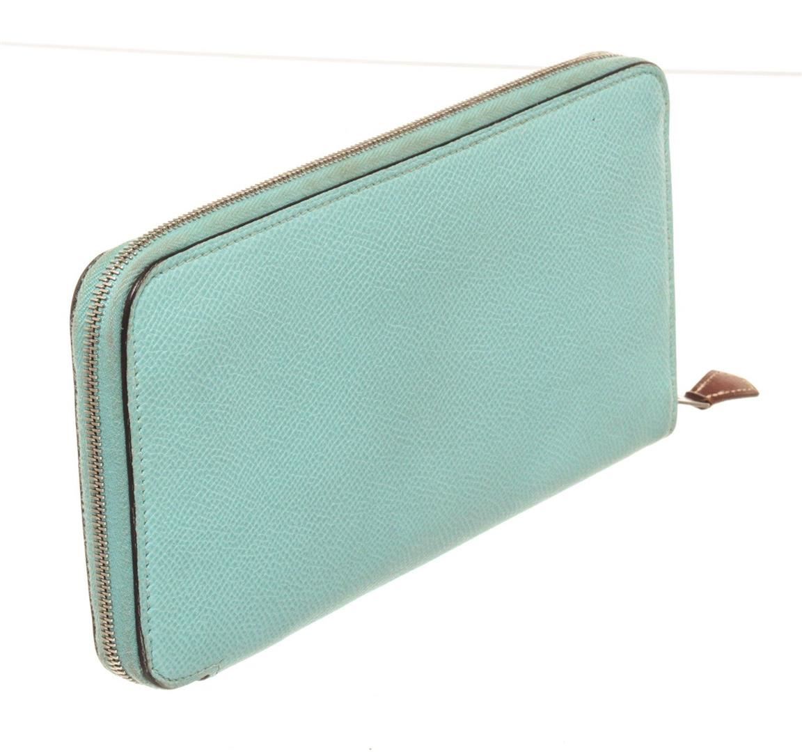 Louis Vuitton Blue Leather Silk In Zippy Wallet with leather, gold-tone hardware, trim tan vachetta leather, interior three compartments pockets and zipper closure.