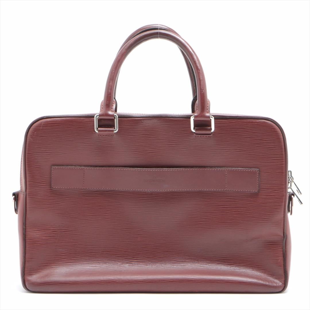 One Louis Vuitton Bordeaux Epi Leather Porte Documents Business Briefcase. Item is sold AS-IS. All available information is listed in the description and shown in the photo. Men's Bordeaux Epi leather Louis Vuitton Porte Documents Business with silver-tone hardware, dual rolled top handles, trolley slit at front, zip pocket at tonal Alcantara lining, six interior wall pockets; one with zip closure, dual pen holsters and two-way zip closure at top. Height: 11.25" Width: 15" Depth: 3" Handle Drop: 5.5"