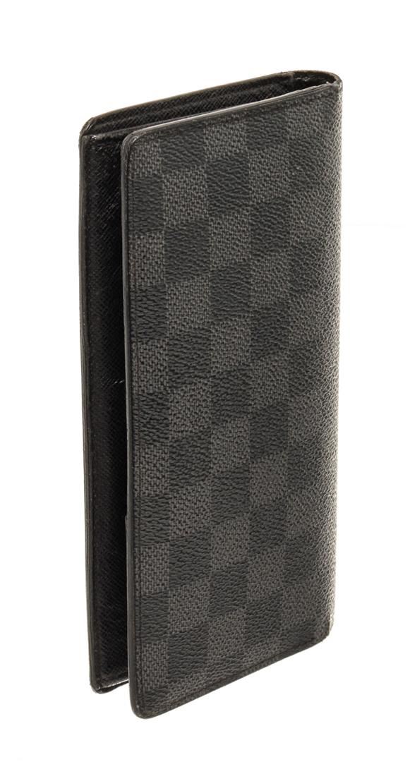 One Louis Vuitton Brazza Wallet. Item is sold AS-IS. All available information is listed in the description and shown in the photo. Louis Vuitton Brazza wallet with Damier Graphite coated canvas exterior, interior zipper pocket, and silver-toned hardware.