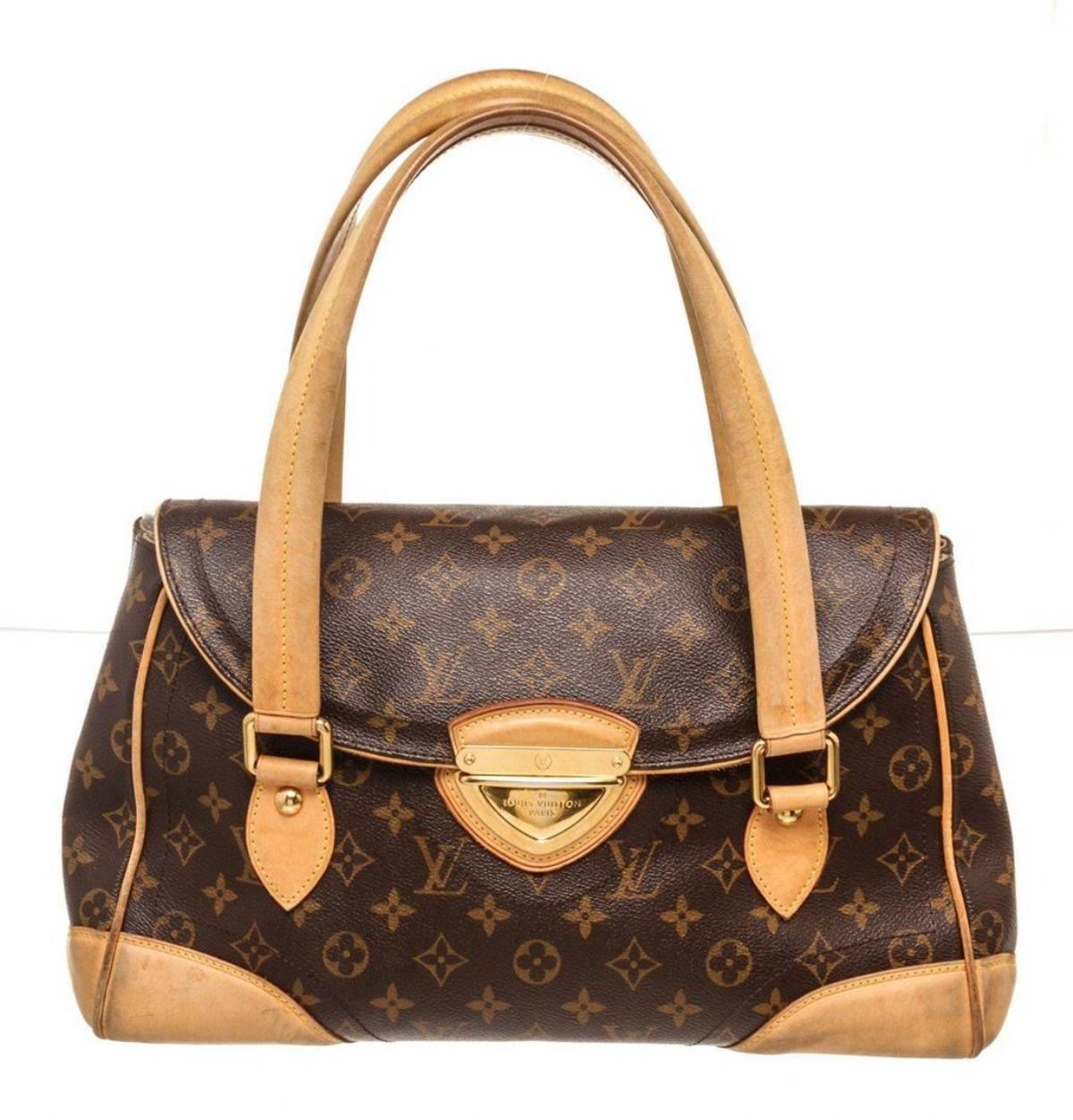 Louis Vuitton Brown Beverly GM Shoulder Bag. Louis Vuitton Brown Monogram Beverly GM Shoulder Bag with material monogram canvas, gold-tone hardware, tan vachetta leather trim, top handle, leather shoulder strap, and zipper closure.