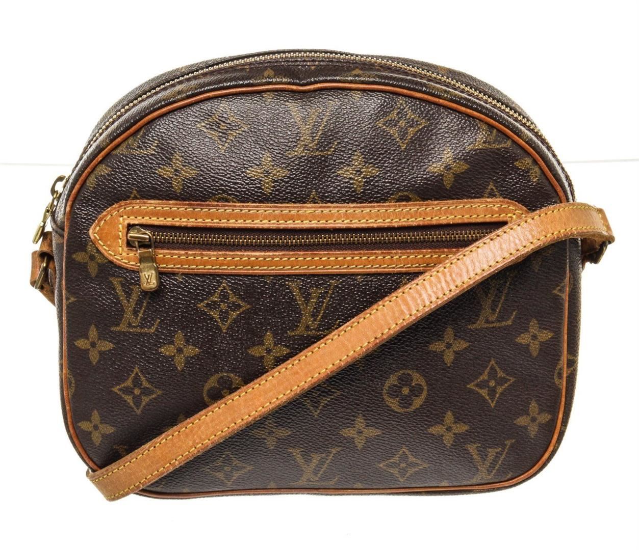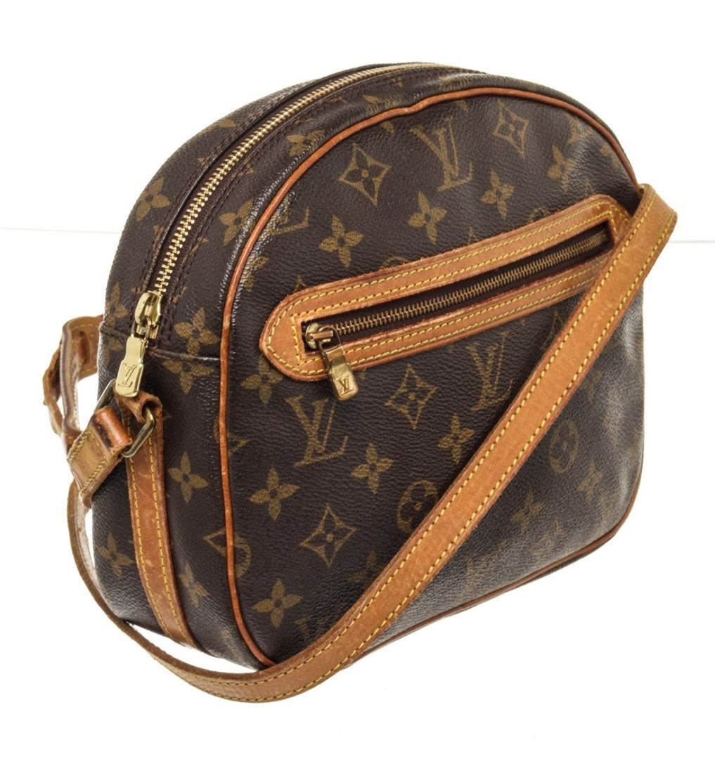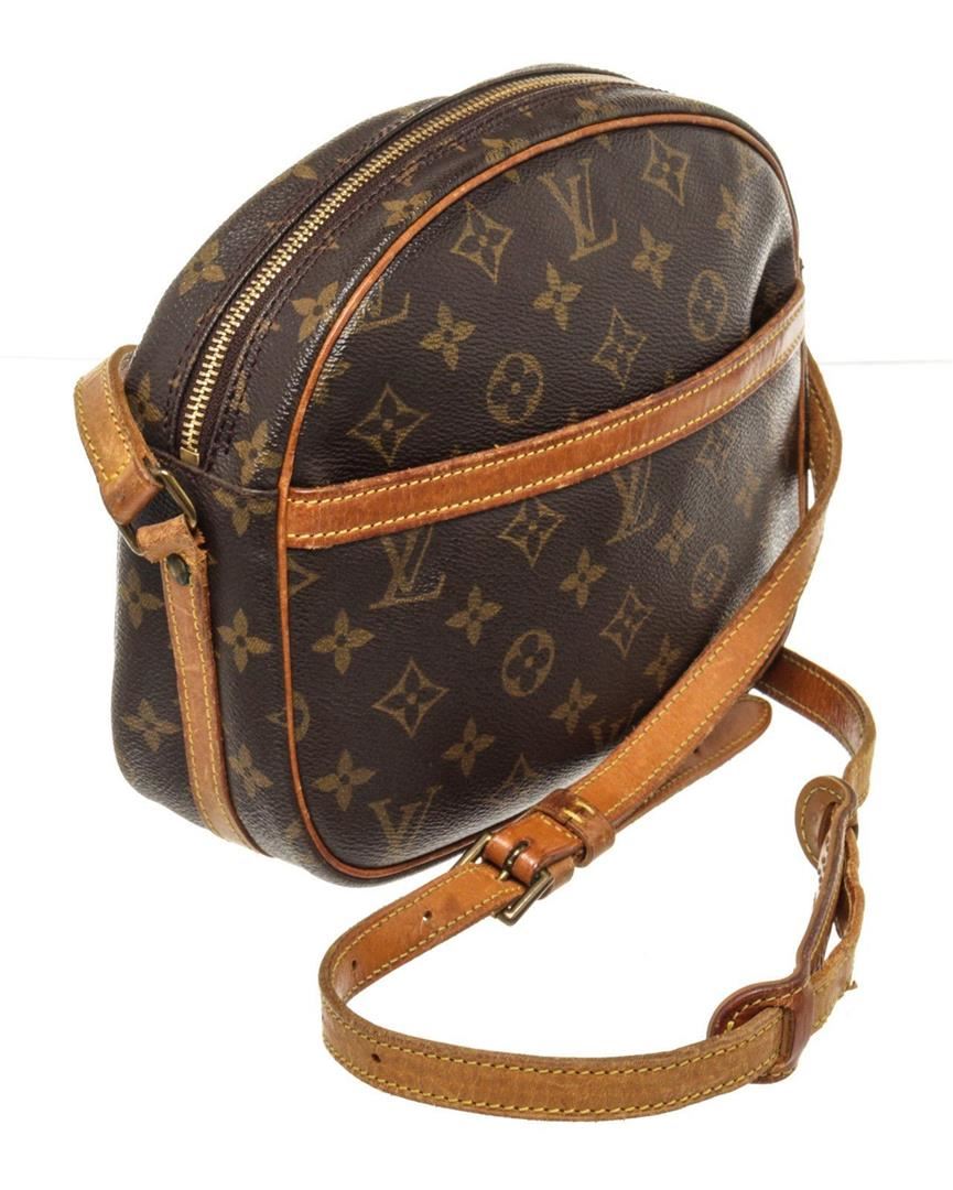Louis Vuitton Brown Blois Shoulder Bag with monogram canvas, gold-tone hardware, trim tan vachetta leather, interior zip pocket, interior slip pocket, shoulder straps and zipper closure.