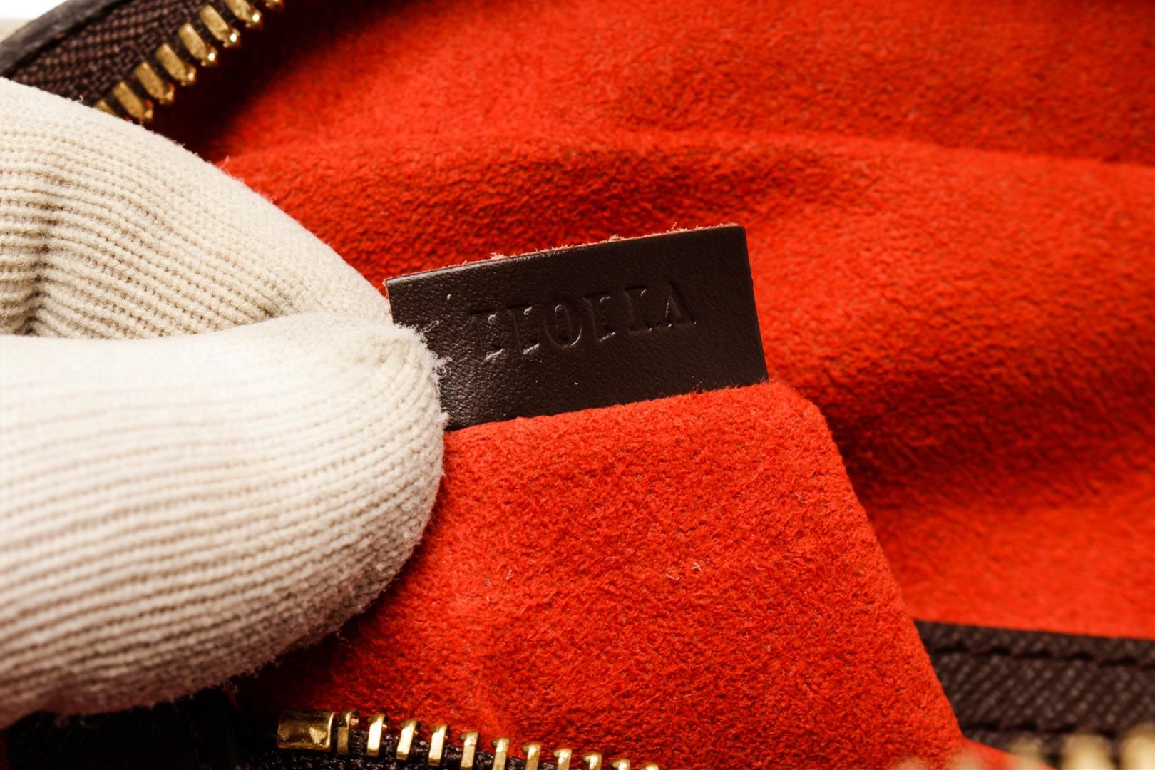 Louis Vuitton Brown Canvas Damier Ebene Brera Tote Bag. All available information is listed in the description and shown in the photos. Louis Vuitton Brown Canvas Damier Ebene Brera Tote Bag with brown coated canvas, damier ebene pattern, brass hardware, dual rolled handles, alcantara lining & single interior pocket, zipper closure at top. Height: 8.5" Width: 9.5" Depth: 4.25", Handle Drop: 5" / 21.59 x 24.13 x 10.79 Cm