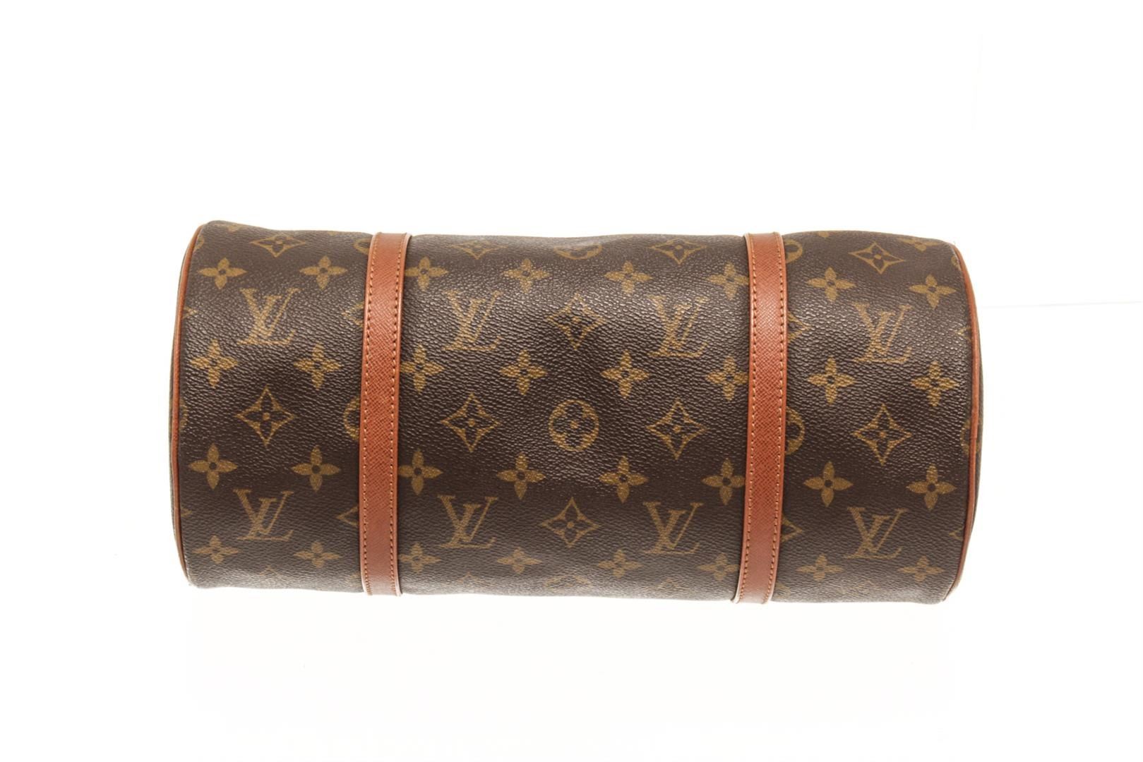 One Louis Vuitton Brown Canvas Papillon 30cm Shoulder Bag. Item is sold AS-IS. All available information is listed in the description and shown in the photo. Louis Vuitton Brown Canvas Papillon 30cm Shoulder Bag with top handle, leather lining, gold tone hardware, zipper closure. Height: 5.3" Width: 11.4" Depth: 2" , Handle Drop: 5.9" / 13.46 x 28.95 x 5.08 Cm