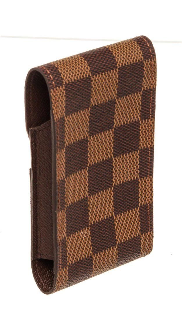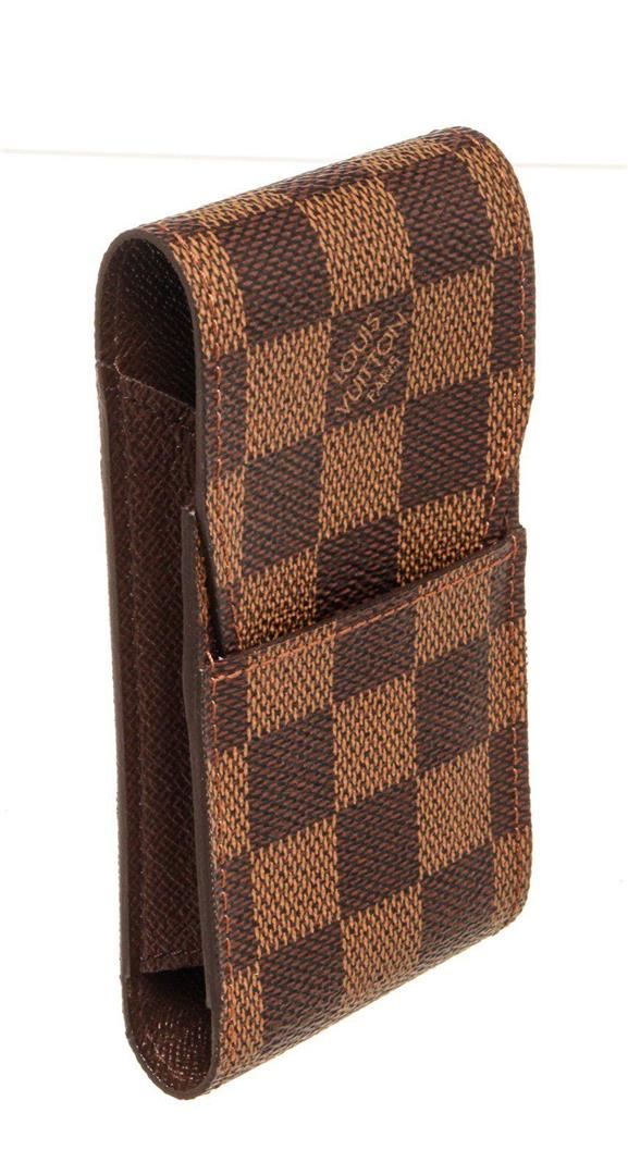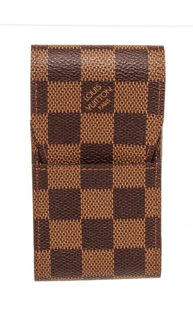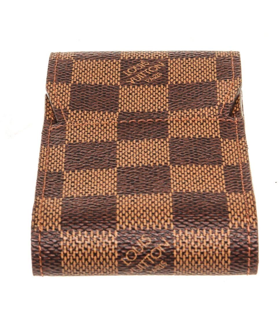Louis Vuitton Brown Damier Canvas Cigarette Case with Damier canvas, gold-tone hardware, trim tan vachetta leather, interior slip pocket and snap closure.