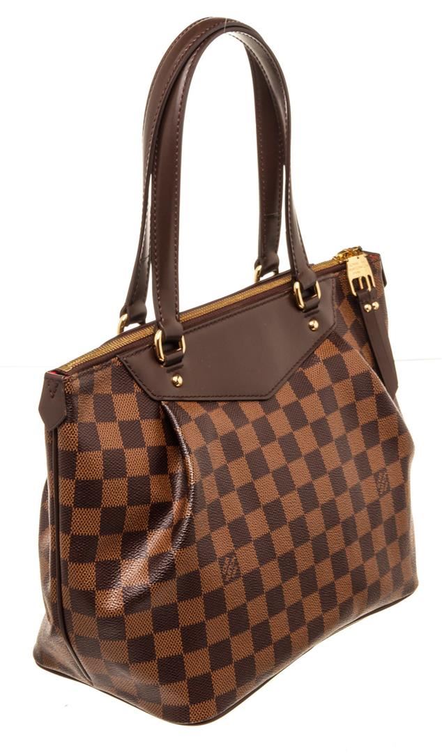Louis Vuitton Brown Monogram Canvas Pouch Wallet with damier canvas, gold-tone hardware, trim tan vachetta leather, interior slip pocket and zipper closure.