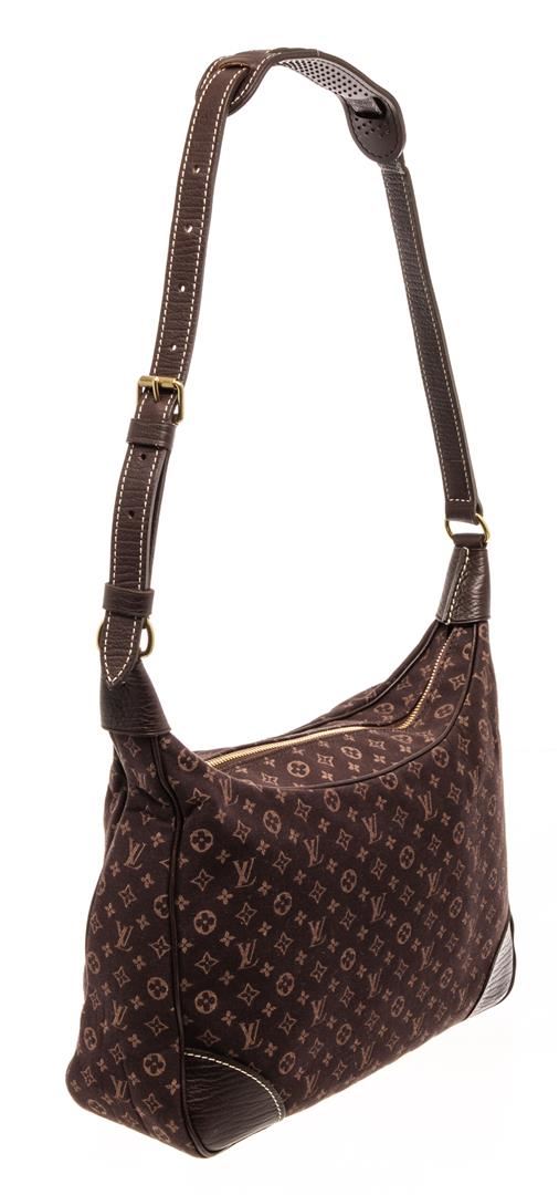 One Louis Vuitton Brown Damier Ebene Boulogne Shoulder Bag. Item is sold AS-IS. All available information is listed in the description and shown in the photo. louis vuitton brown damier ebene boulogne shoulder bag brown damier ebene boulogne shoulder bag with adjustable shoulder strap, dark brown leather base corners and trims, subtle contrast stitching, and gold-tone hardware accents. its top zip closure opens to a brown fabric-lined interior with zip and slip pockets perfect for daily essentials. Height: 20.32 cm (8 in), Width: 29.21 cm (11.5 in), Depth: 10.16 cm (4 in)