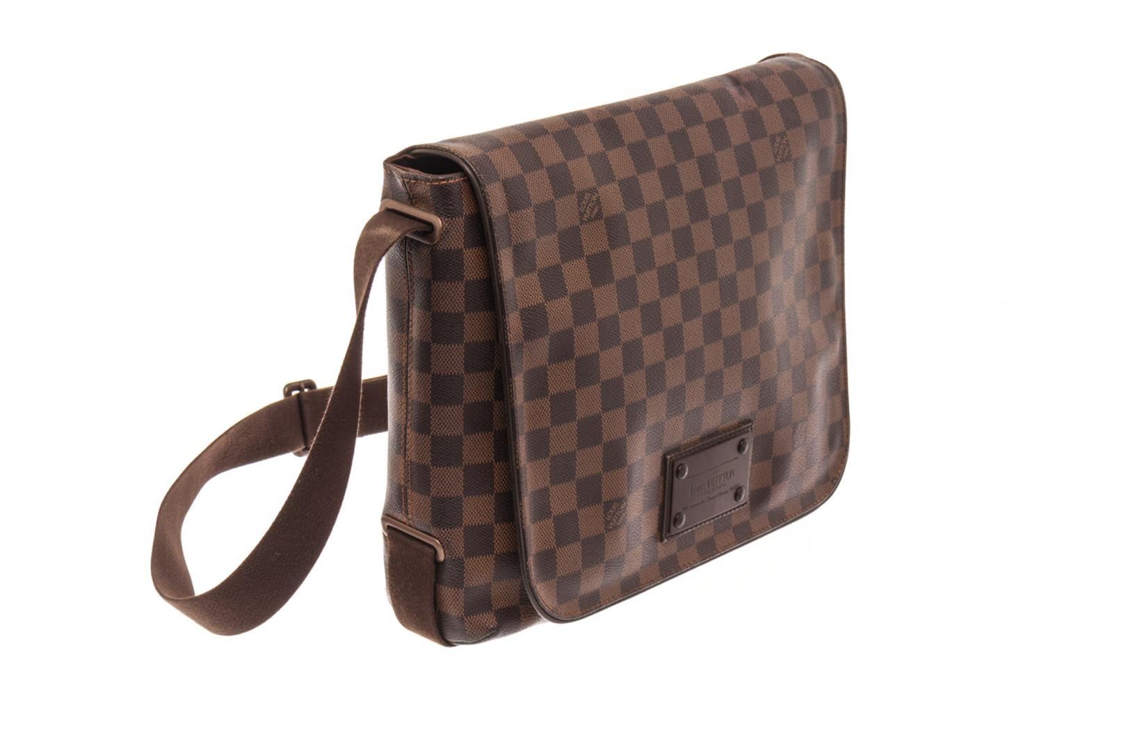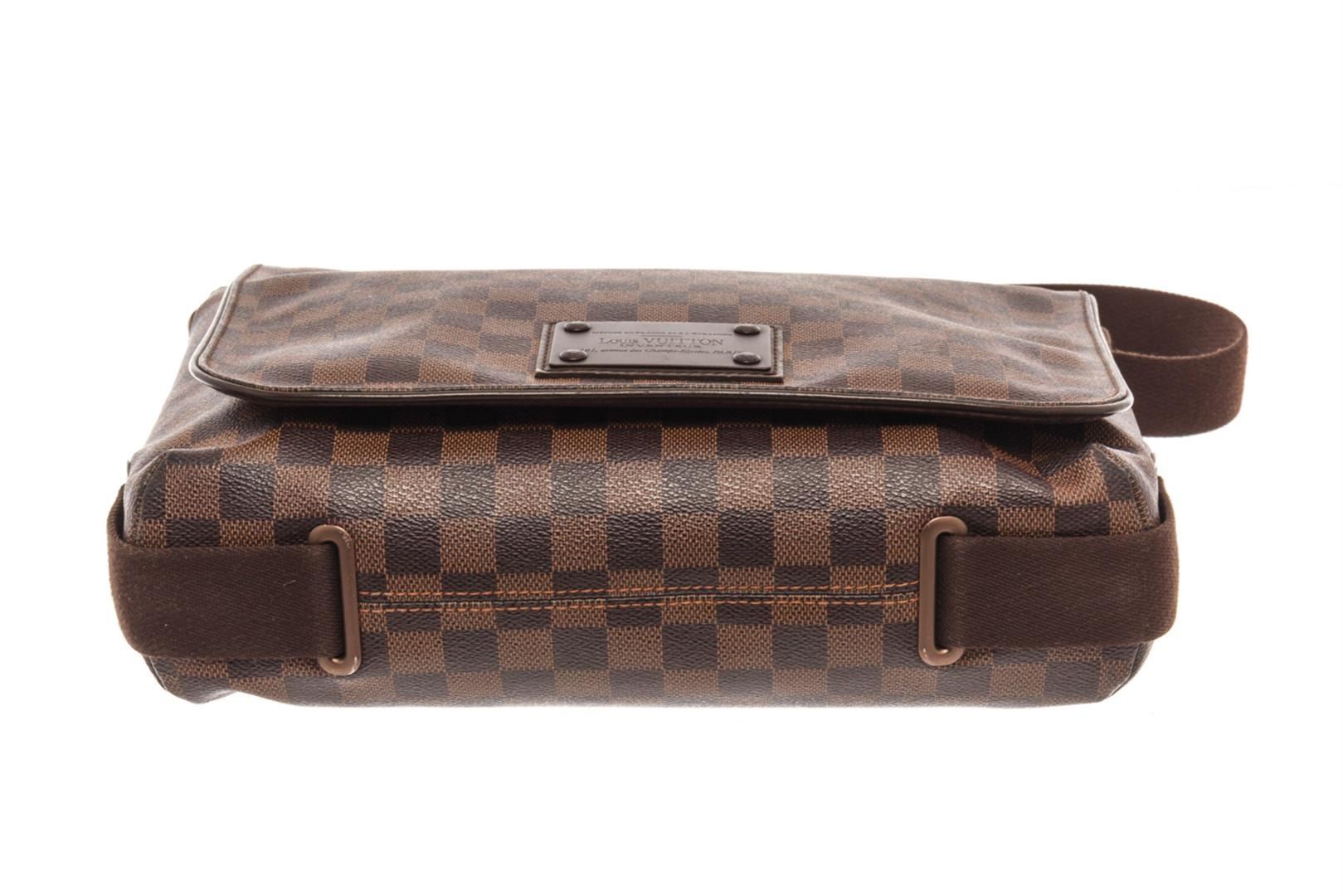 Louis Vuitton Brown Damier Ebene Brooklyn MM Messenger Bag. All available information is listed in the description and shown in the photos. Louis Vuitton Brown Damier Ebene Brooklyn MM Messenger Bag with brown nylon cross body strap with brass hardware, a full frontal magnetic flap and a large zippered compartment on the back closure and an internal logo stamp, This opens to a brown fabric interior with one large zippered pocket compartment and one small patch pocket. (WxHxL)[cm] 34 x 27 x 9 / 13.38" x 10.62" x 3.54"