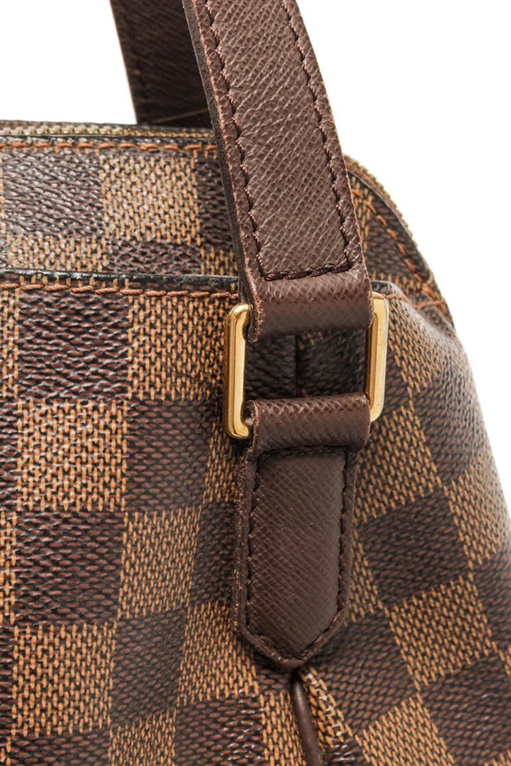 One Louis Vuitton Brown Damier Ebene Canvas Belem Pm Top-Handle Bag. Item is sold AS-IS. All available information is listed in the description and shown in the photo. louis vuitton brown damier ebene canvas belem pm top-handle bag with gold-tone hardware, brown, leather trim, two rounded top handles, two-way zip fastening, main compartment slip pocket to the front slip pocket to the rear, zip closure. Depth 5.5 in, Handle 3.5 in, Height 7.1 in, Width 9.8 in / Depth 14 cm, Handle 9 cm, Height 18 cm, Width 25 cm