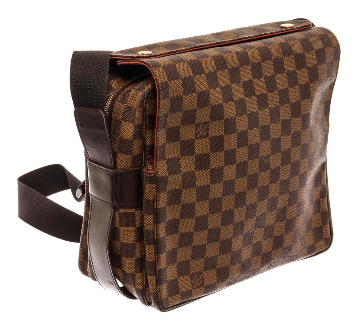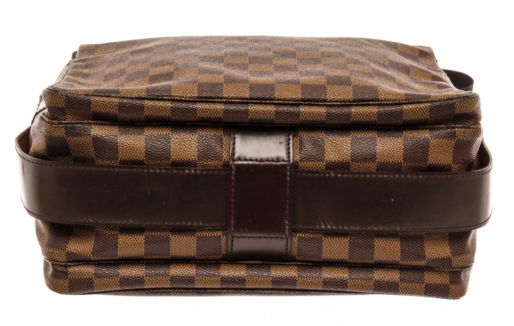 Louis Vuitton Brown Damier Ebene Canvas Naviglio Crossbody Bag. All available information is listed in the description and shown in the photos. Louis Vuitton Brown Damier Ebene Canvas Naviglio Crossbody Bag with the naviglio features, a damier canvas body, a flat strap, gold-tone hardware, a top flap with snap closure, a top zip closure, and an interior slip pocket. 9.4" L x 12.2" W x 4.7" D, / 23.87 x 30.98 x 11.93 Cm