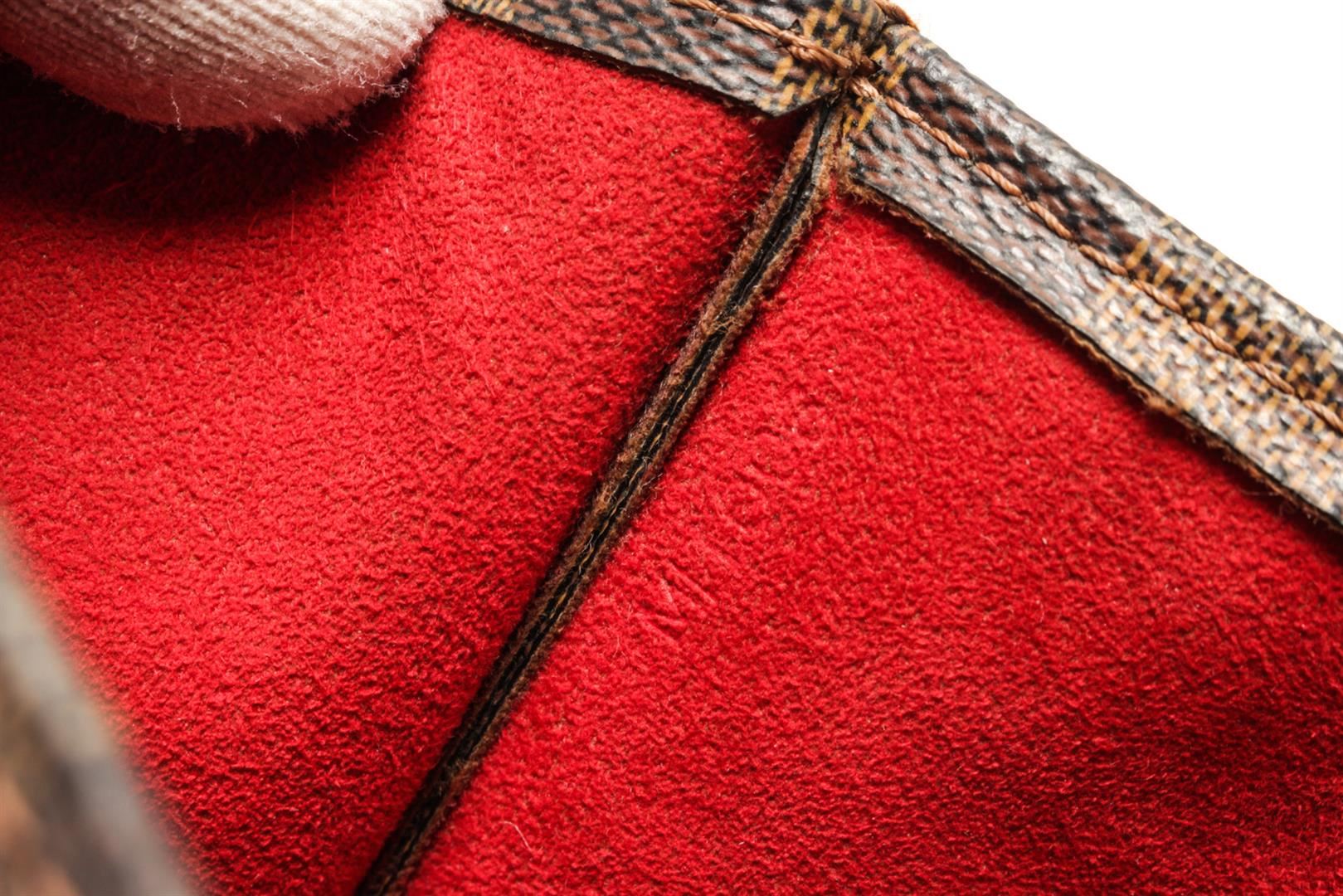 One Louis Vuitton Brown Damier Ebene Canvas Sac Plat Tote Bag. Item is sold AS-IS. All available information is listed in the description and shown in the photo. Louis Vuitton Brown Damier Ebene Canvas Sac Plat Tote Bag with gold-tone hardware, internal logo patch internal patch pockets main compartment, two rounded top handles leather trim, open top, red suede lining. Depth 3.9 in, Handle 4.7 in, Height 15 in, Width 14.2 in/ Depth 10 cm, Handle 12 cm, Height 38 cm, Width 36 cm