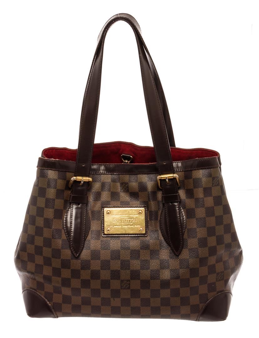 Louis Vuitton Brown Damier Ebene Leather Hampstead MM Shoulder Bag. All available information is listed in the description and shown in the photos. Louis Vuitton Brown Damier Ebene Leather Hampstead MM Shoulder Bag with damier ebene pattern, gold-tone hardware, leather trim, dual shoulder straps, leather trim embellishment, internal zip-fastening pocket, alcantara lining & three interior pockets, clasp closure at top. Height: 11" Width: 13.5" Depth: 6.5", Shoulder Strap Drop: 7" / 27.94 x 34.29 x 16.51 Cm
