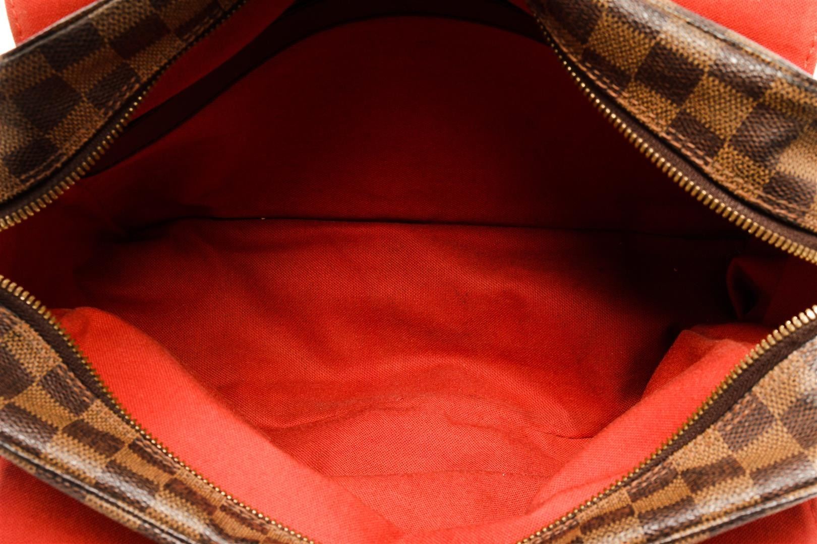 Louis Vuitton Brown Damier Ebene Naviglio Messenger Bag. All available information is listed in the description and shown in the photos. Louis Vuitton Brown Damier Ebene Naviglio Messenger Bag with damier ebene pattern, gold-tone hardware, single adjustable shoulder strap, grosgrain lining & single interior pocket, snap closure at top Height: 30" Width: 13.5" Depth: 5" Shoulder Strap Drop: 20"