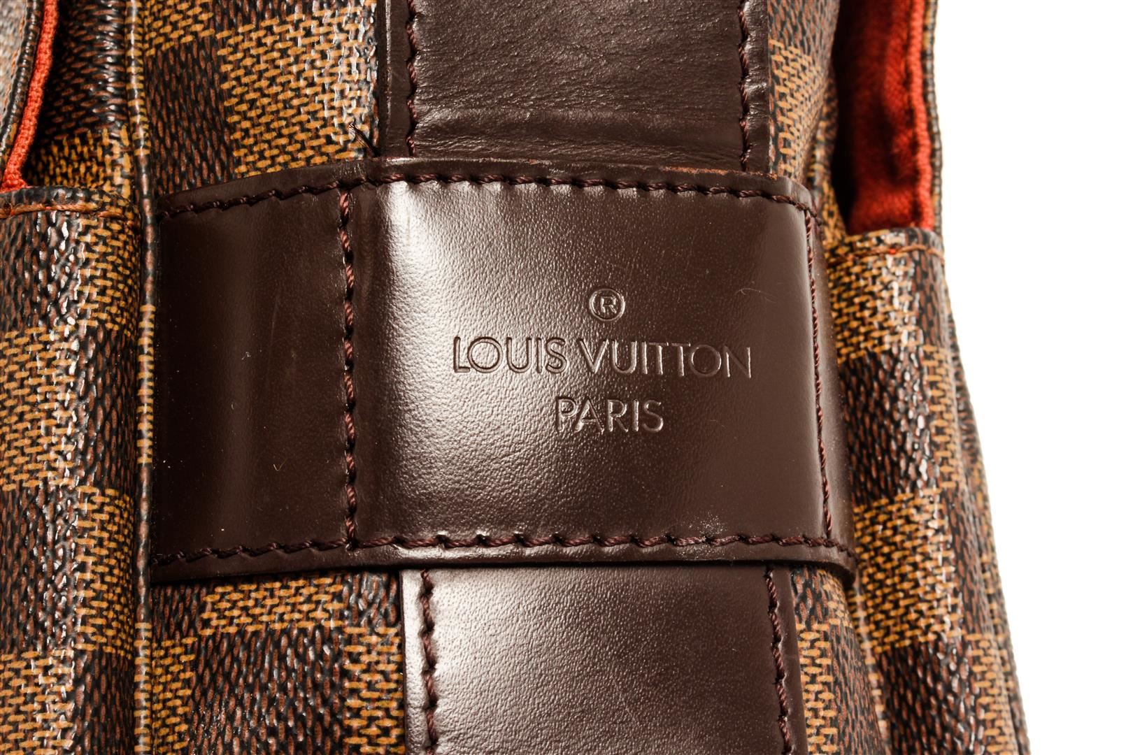 Louis Vuitton Brown Damier Ebene Naviglio Messenger Bag. All available information is listed in the description and shown in the photos. Louis Vuitton Brown Damier Ebene Naviglio Messenger Bag with damier ebene pattern, gold-tone hardware, single adjustable shoulder strap, grosgrain lining & single interior pocket, snap closure at top Height: 30" Width: 13.5" Depth: 5" Shoulder Strap Drop: 20"
