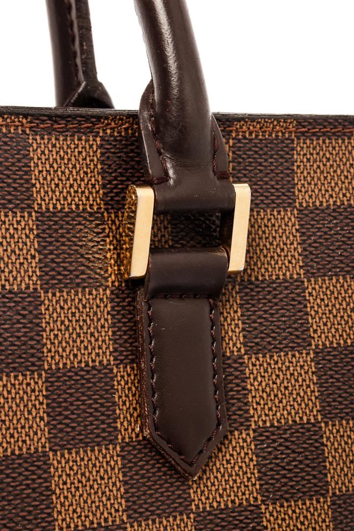 Louis Vuitton Brown Damier Ebene Venice Sac Plat Bag. All available information is listed in the description and shown in the photos. Louis Vuitton Brown Damier Ebene Venice Sac Plat Bag with the venice sac plat features a damier canvas body, damier ebene pattern, leather trim embellishment, rolled leather handles, a top zip closure, and alcantara lining & single interior pocket. 11.2" L x 11" W x 3.1" D, Drop: 3.7", 28.44 x 27.94 x 7.87 Cm