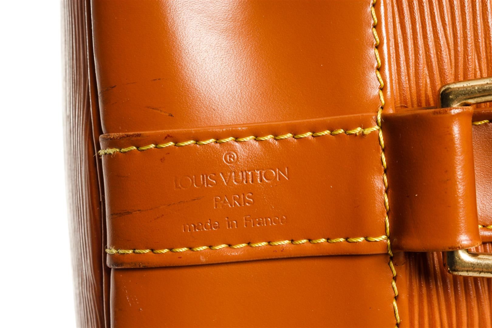 One Louis Vuitton Brown Epi Leather Randonnee PM Shoulder Bag. Item is sold AS-IS. All available information is listed in the description and shown in the photo. Louis Vuitton Brown Epi Leather Randonnee PM Shoulder Bag with suede lining, shoulder strap and gold tone hardware.