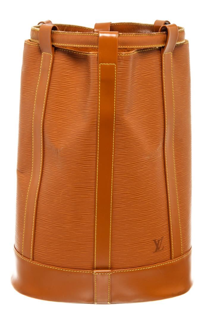 One Louis Vuitton Brown Epi Leather Randonnee PM Shoulder Bag. Item is sold AS-IS. All available information is listed in the description and shown in the photo. Louis Vuitton Brown Epi Leather Randonnee PM Shoulder Bag with suede lining, shoulder strap and gold tone hardware.