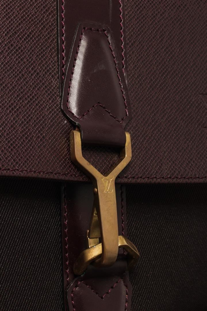 One Louis Vuitton Brown Leather Portable Garment Briefcase. Item is sold AS-IS. All available information is listed in the description and shown in the photo. Louis Vuitton Brown Leather Portable Garment Briefcase with top handle, detachable strap, top flap is leather, bottom half is canvas, two interior zip pockets, comes with a hanger, gold tone hardware, buckle and zip closure.