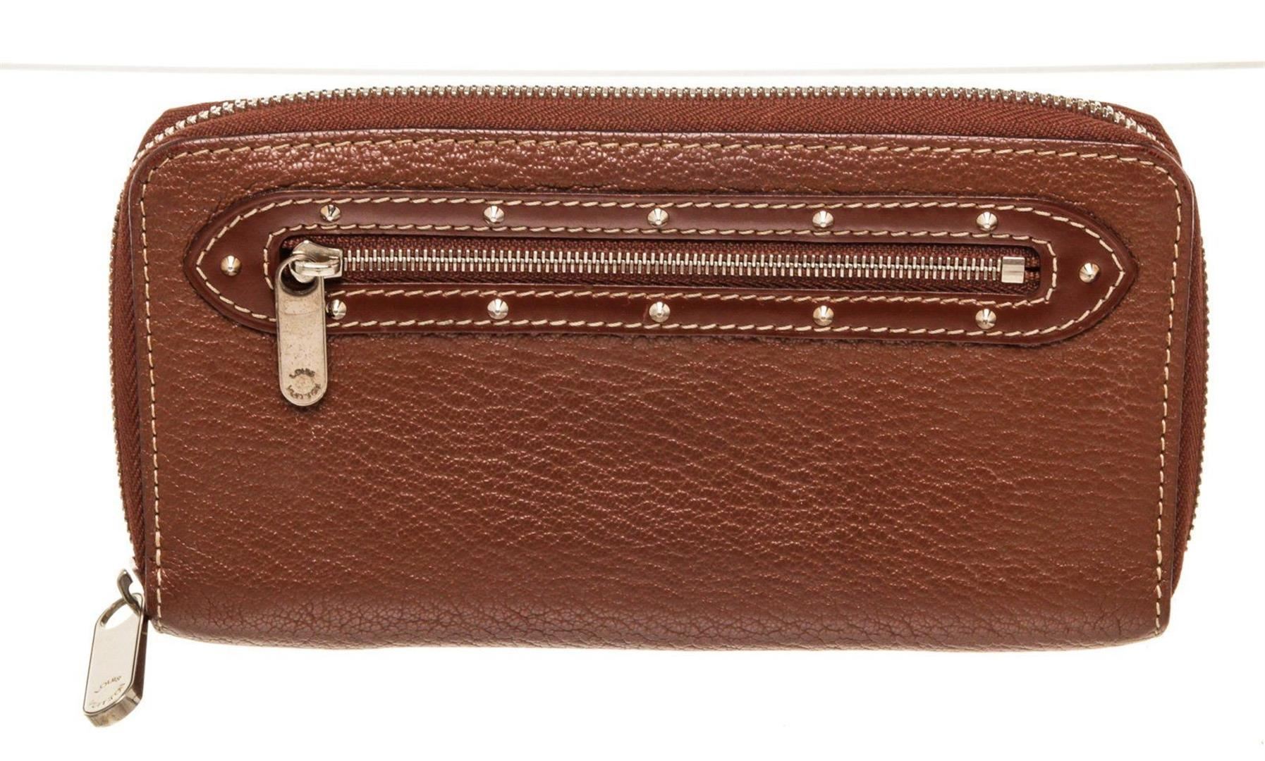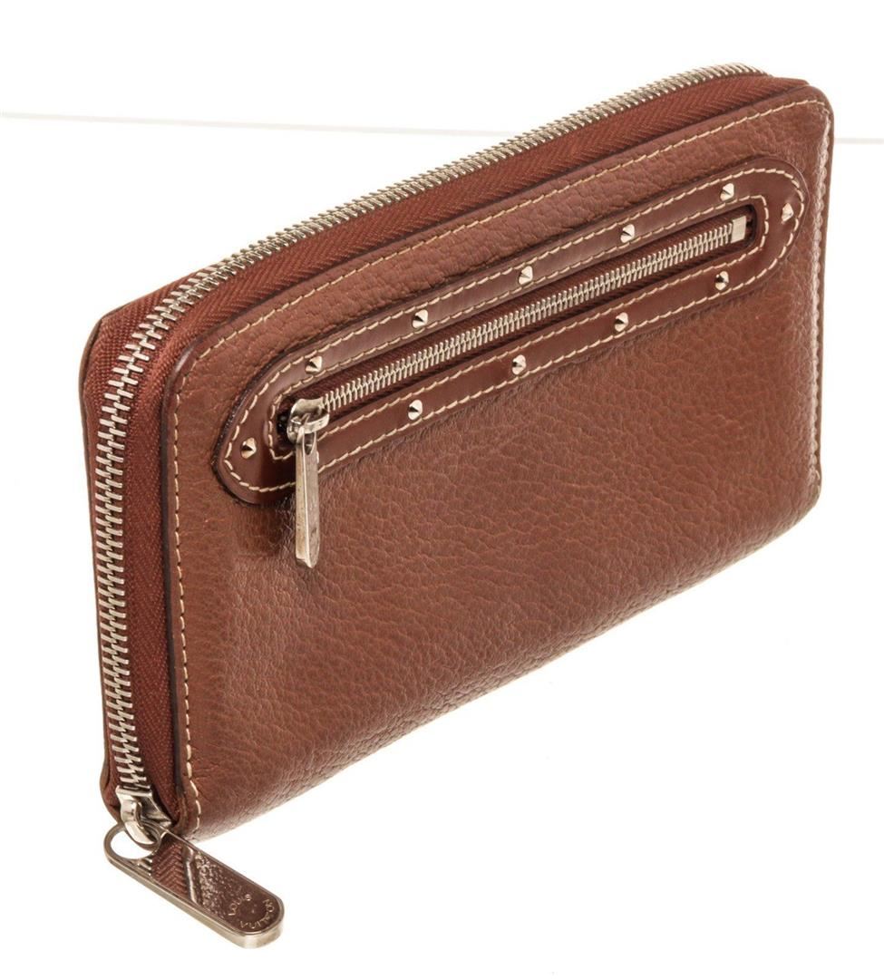 Louis Vuitton Brown Leather Zippy Wallet with leather, gold-tone hardware, exterior zip pockets, interior three compartments pockets and zipper closure.