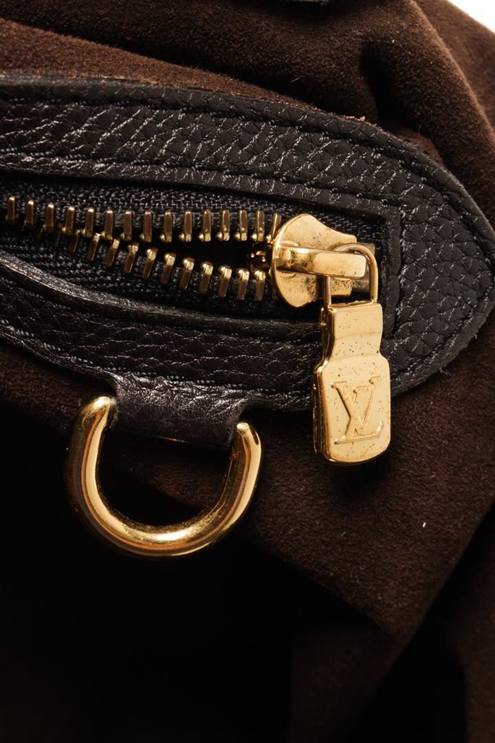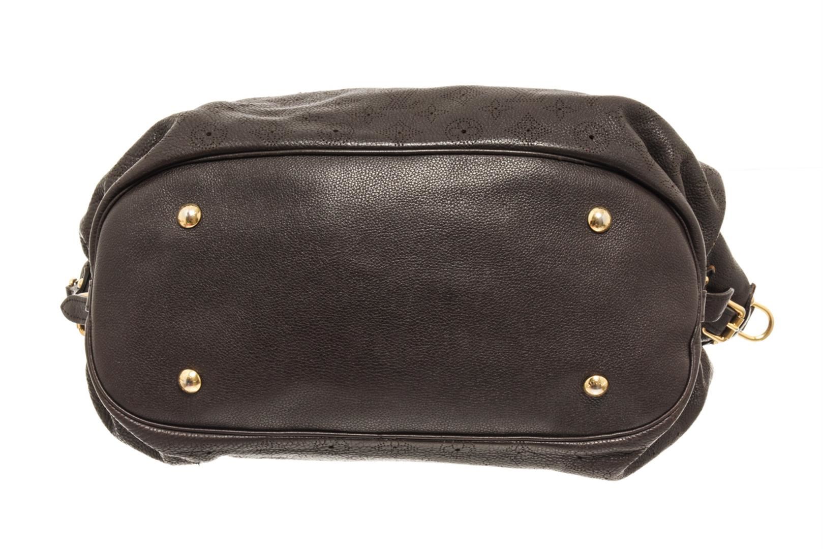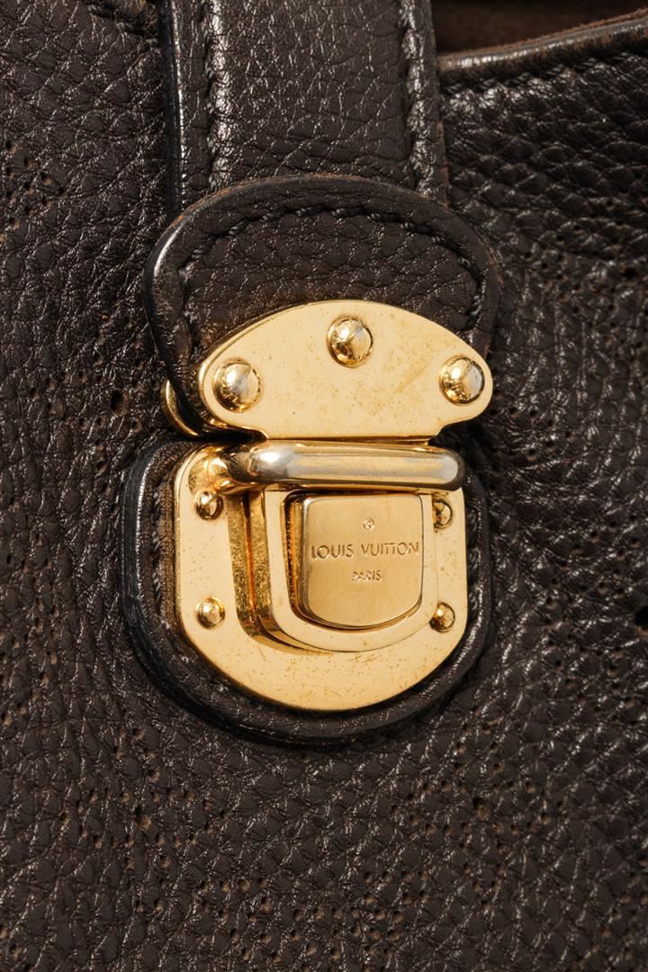 Louis Vuitton Brown Mahina Leather Hobo Bag. All available information is listed in the description and shown in the photos. louis vuitton brown mahina leather hobo bag with brass hardware dual shoulder straps lasercut accents alcantara lining & single interior pocket push-lock closure at front protective feet at base. Height: 11.5" Width: 15.25" Depth: 6.5", Handle Drop: 7" / 29.21 x 38.73 x 16.51 Cm