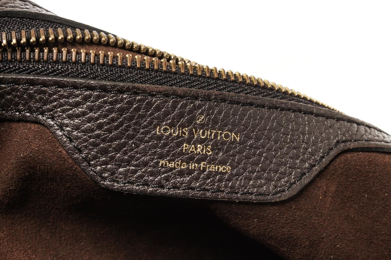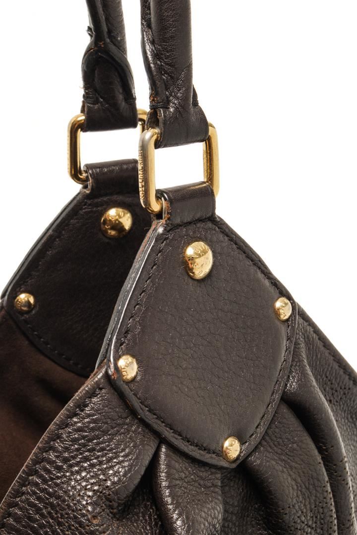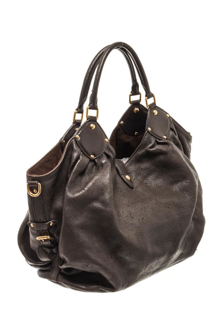 Louis Vuitton Brown Mahina Leather Hobo Bag. All available information is listed in the description and shown in the photos. louis vuitton brown mahina leather hobo bag with brass hardware dual shoulder straps lasercut accents alcantara lining & single interior pocket push-lock closure at front protective feet at base. Height: 11.5" Width: 15.25" Depth: 6.5", Handle Drop: 7" / 29.21 x 38.73 x 16.51 Cm