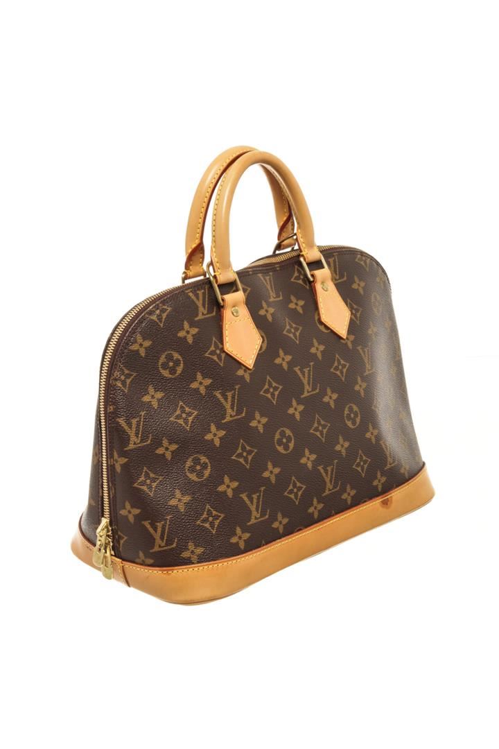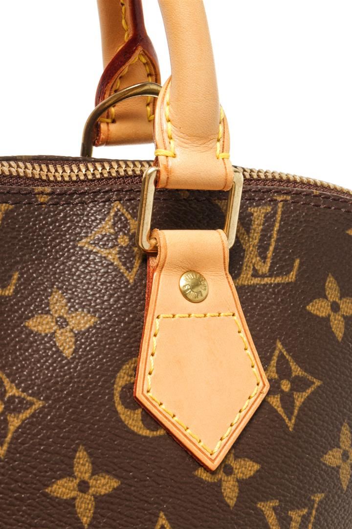 One Louis Vuitton Brown Monogram Alma PM Bag. Item is sold AS-IS. All available information is listed in the description and shown in the photo. Louis Vuitton Brown Monogram Alma PM Bag with top handle, canvas lining, interior slip pockets, gold tone hardware, zipper closure. There is some wear on the bottom of the bag. Height: 8.9" Width: 12.2" Depth: 5.9", Handle Drop: 3.1" / 22.60 x 30.98 x 14.98 Cm