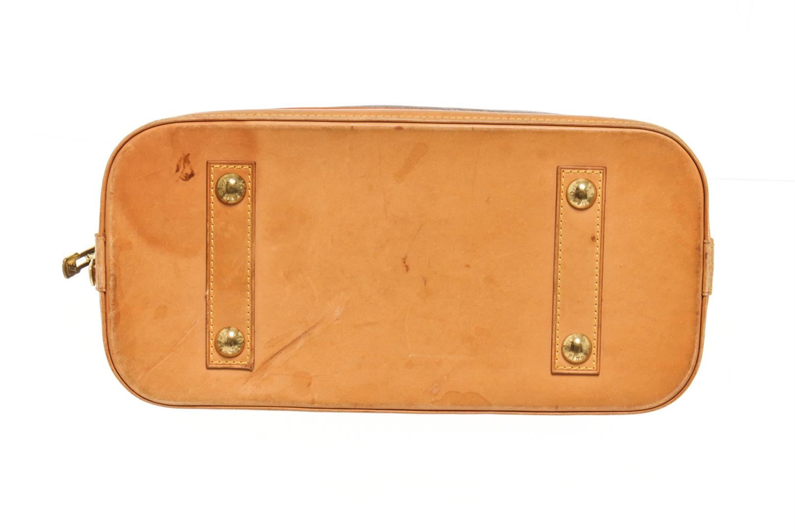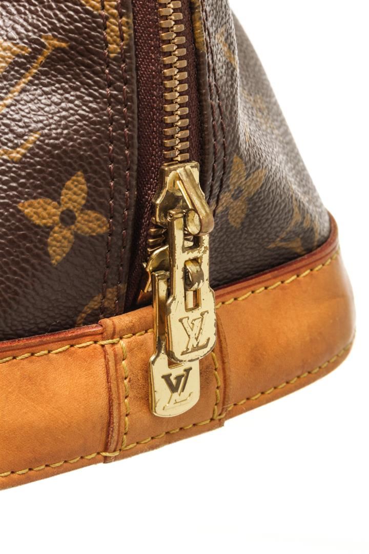 One Louis Vuitton Brown Monogram Alma PM Bag. Item is sold AS-IS. All available information is listed in the description and shown in the photo. Louis Vuitton Brown Monogram Alma PM Bag with top handle, canvas lining, interior slip pockets, gold tone hardware, zipper closure. There is some wear on the bottom of the bag and handles. Please refer to photos. Height: 9.1" Width: 14.2" Depth: 6.1", Handle Drop: 3.1" / 23.11 x 36.06 x 15.49 Cm