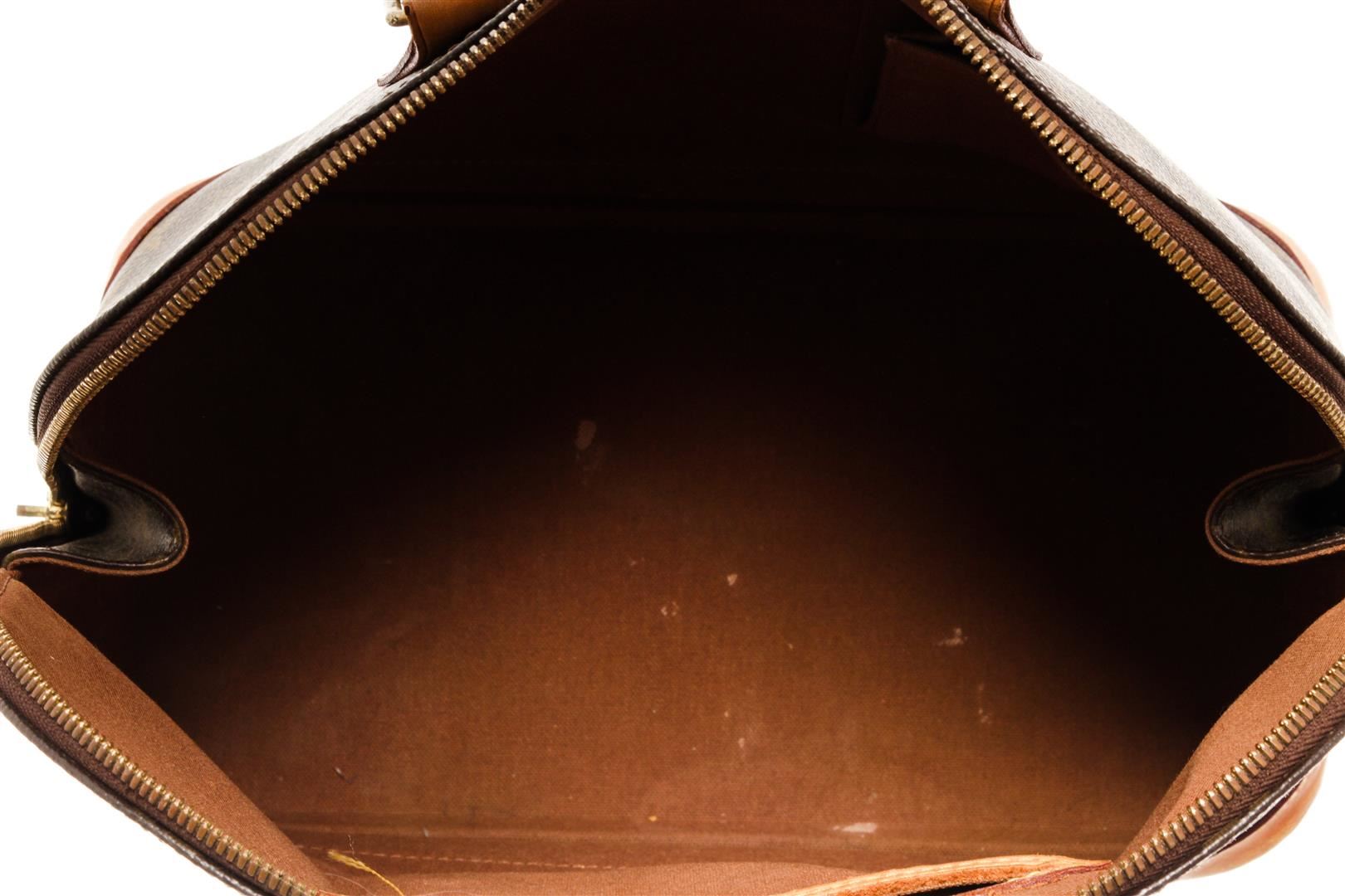 One Louis Vuitton Brown Monogram Alma PM Handbag. Item is sold AS-IS. All available information is listed in the description and shown in the photo. Louis Vuitton Brown Monogram Alma PM Handbag with gold tone hardware, leather trim, top handle, leather trim embellishment, canvas lining & single interior pocket, zip closure. Height: 9.5" Width: 12" Depth: 6.5" Handle Drop: 3.25" / 24.1 x 30.4 x 16.5 Cm