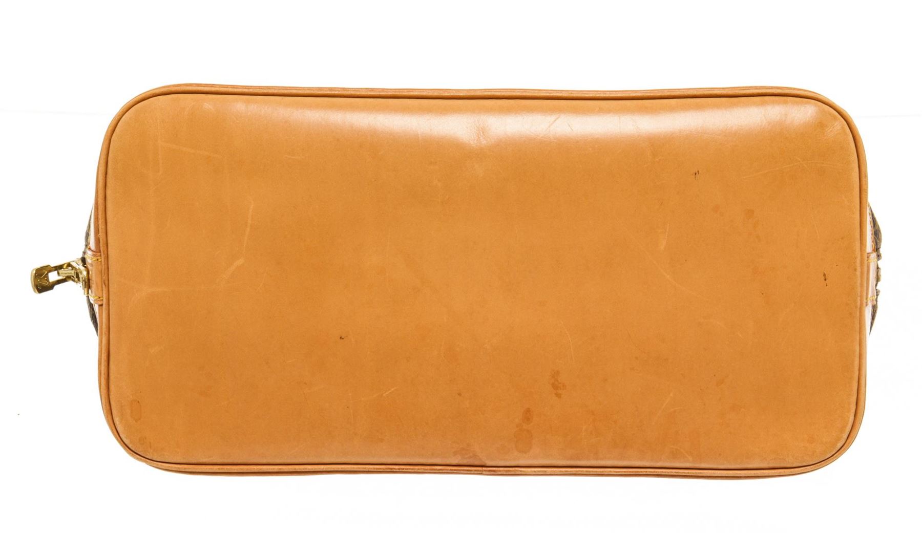 One Louis Vuitton Brown Monogram Canvas Alma PM Satchel Bag. Item is sold AS-IS. All available information is listed in the description and shown in the photo. brown louis vuitton monogram alma pm bag with the alma pm features a monogram canvas body, rolled leather handles, a leather bottom, a top zip closure, and an interior slip pocket. 8.9" L x 11.4" W x 5.9" D / 22.60 x 28.95 x 14.98 CM
