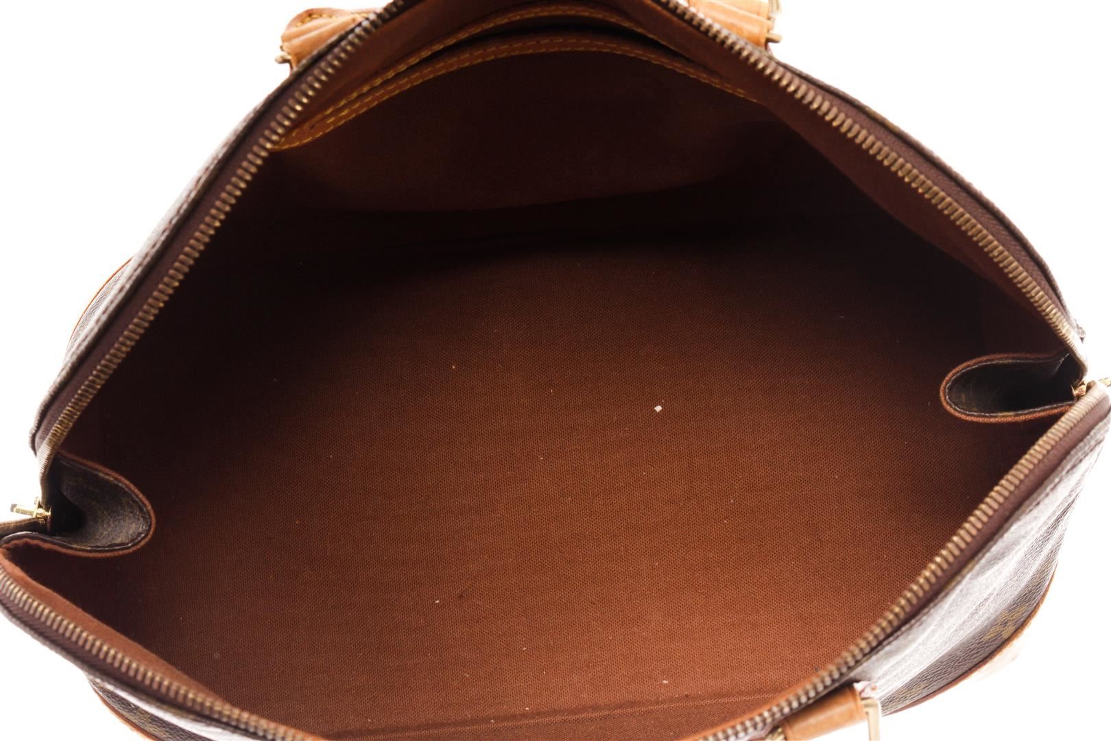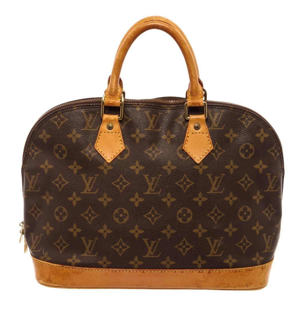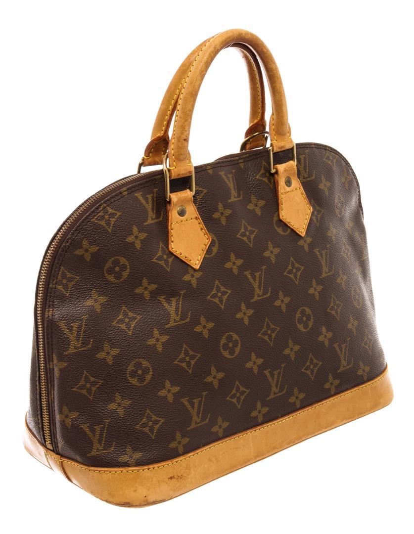 Louis Vuitton Brown Monogram Canvas Alma Satchel Bag. All available information is listed in the description and shown in the photos. Louis Vuitton Brown Monogram Canvas Alma Satchel Bag with gold-tone hardware, trim tan vachetta leather, brown canvas lining, leather trim inside, golden brass pieces, rounded leather handles. H:9.25" x W:11.81" x D:6.29" / H:23.5cm x W:30cm x D:16cm