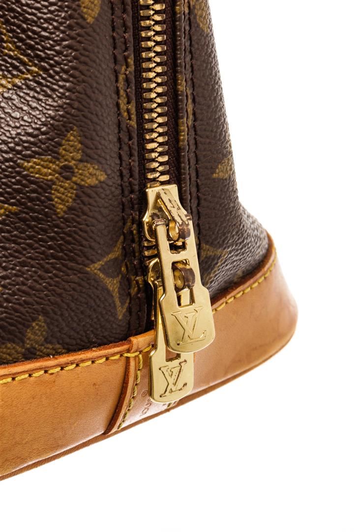 Louis Vuitton Brown Monogram Canvas Alma Satchel Bag. All available information is listed in the description and shown in the photos. Louis Vuitton Brown Monogram Canvas Alma Satchel Bag with gold-tone hardware, trim tan vachetta leather, brown canvas lining, leather trim inside, golden brass pieces, rounded leather handles. H:9.25" x W:11.81" x D:6.29" / H:23.5cm x W:30cm x D:16cm