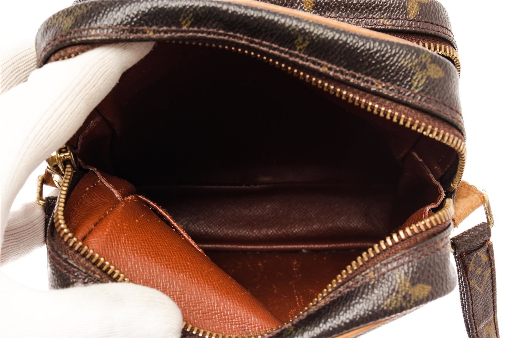Louis Vuitton Brown Monogram Canvas Amazone Crossbody Bag. All available information is listed in the description and shown in the photos. Louis Vuitton Brown Monogram Canvas Amazone Crossbody Bag with tan vachetta leather trim, brass hardware, adjustable shoulder strap, exterior zip pocket, interior slip pocket and top zip closure. Height: 22.86 cm (9 in), Width: 15.24 cm (6 in), Depth: 8.89 cm (3.5 in)